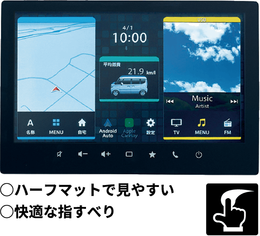 昨今の車載液晶ディスプレイは大画面化に伴う高輝度・高精細化により美しいグラフィックと情報量の多い表示が可能です。しかし、外光による表示への影響も受けやすくなりました。
