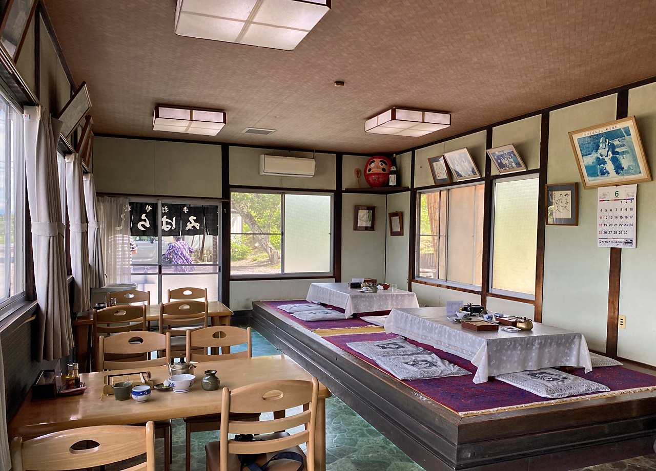 宿泊では「メニューから選べる夕食」が特徴的で、手打ち蕎麦はもちろん、地元食材を使ったおばんざいや岩魚の塩焼き、山賊焼き、お造りなど手の込んだ食事が提供されます。