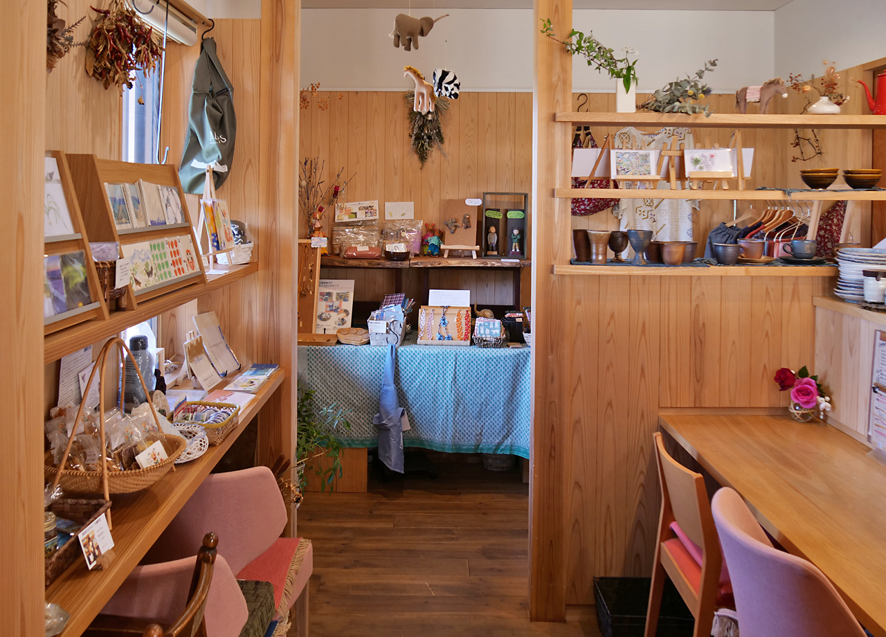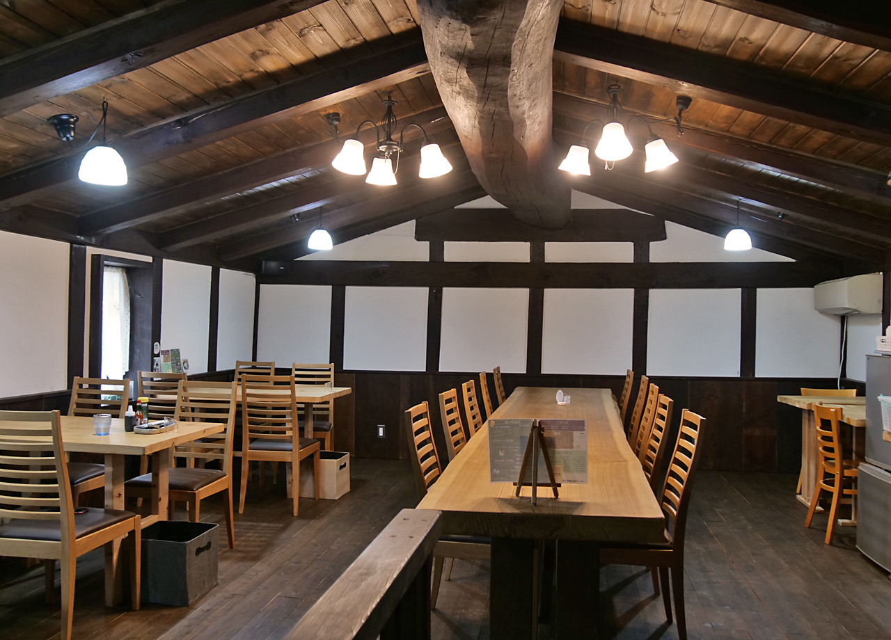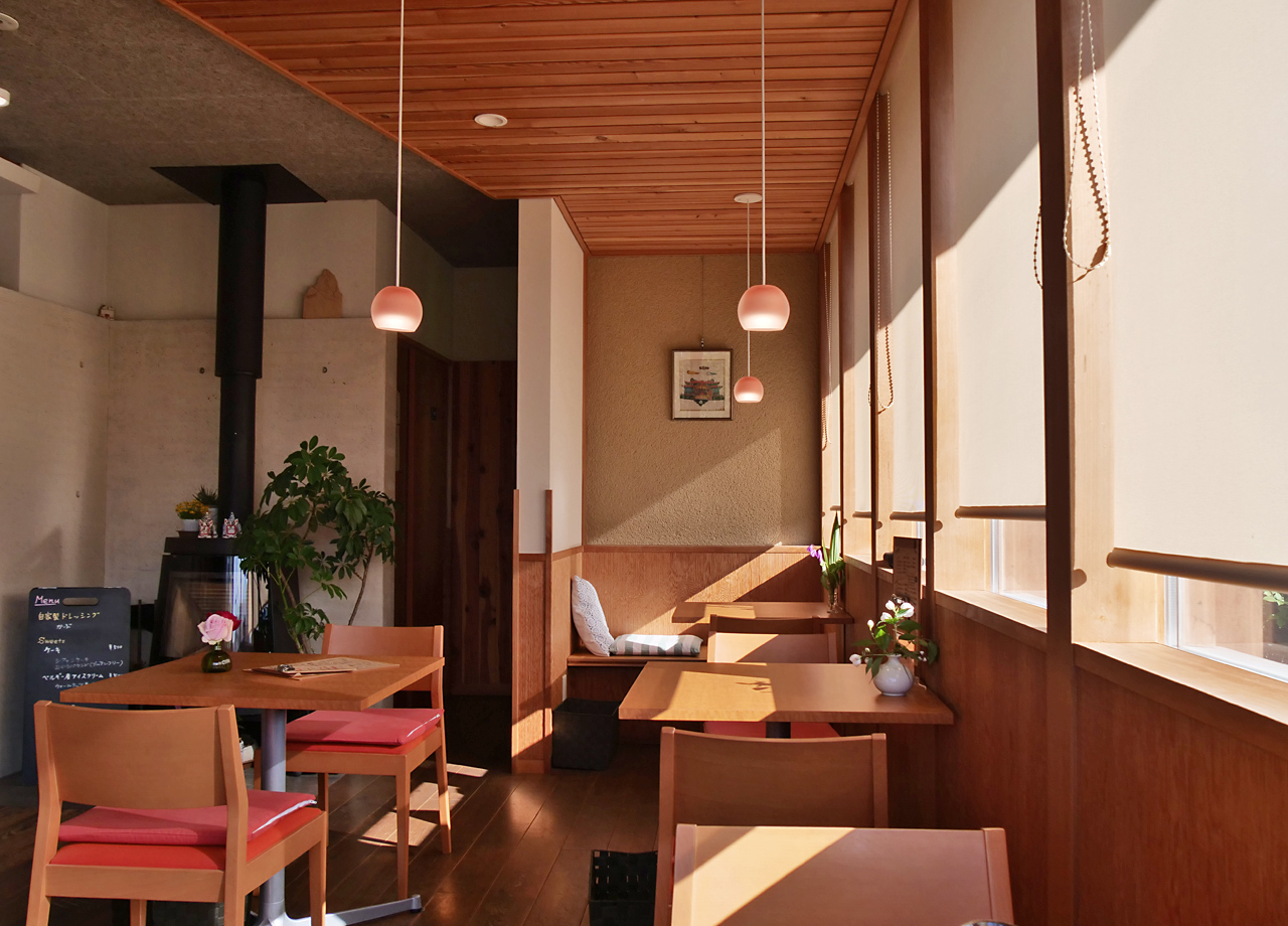 特徴的なお店の外観は、藁とブロックを積み重ねて漆喰で塗装した「ストローベイルハウス」と呼ばれるもので、解体しても土に帰るという環境に配慮した建物。自分たちの手で一から建てたそうです。店内には薪ストーブが置かれ、自然に囲まれているような温かみと居心地の良さを感じることができます。穏やかな時間を過ごしたくなるお店です。