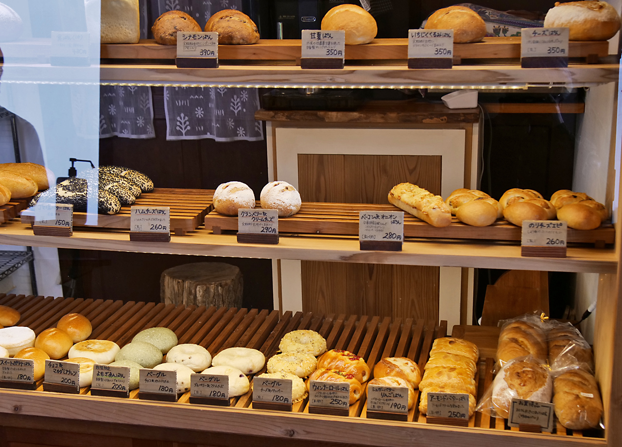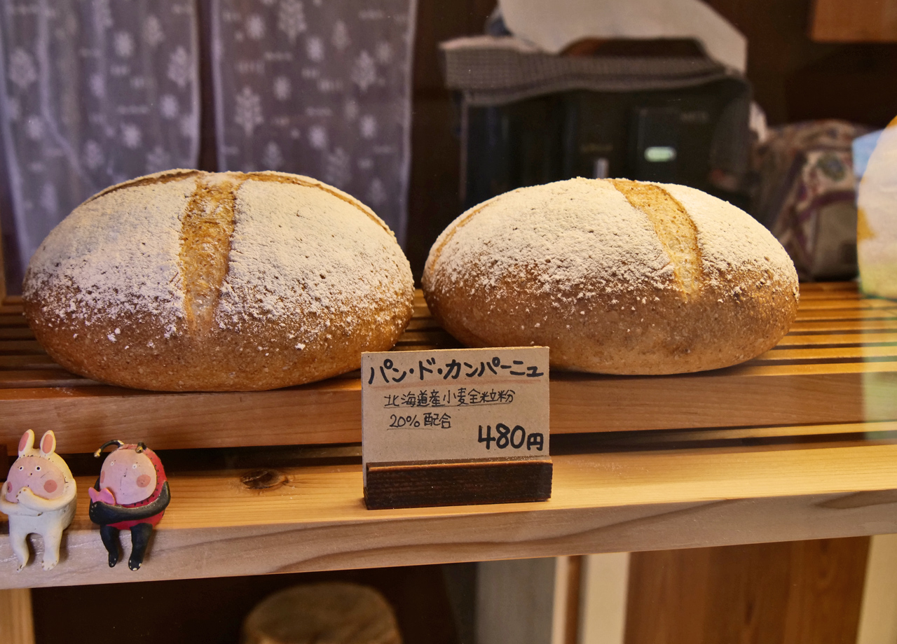 大町郊外、黒部ダムへ向かうアルペンロード近くにあるベーカリー『パン・ド・カンパーニュ』は、市街地から離れた場所にありながら、ファンが足繁く通う人気店です。北アルプスを臨む自然の中で「ものづくりの原点」を追求しているというこちらでは、砂糖や添加物は一切使わず、国産小麦・天然酵母・塩のみを原料に、小麦粉本来の甘味や香りにこだわったパンを提供しています。