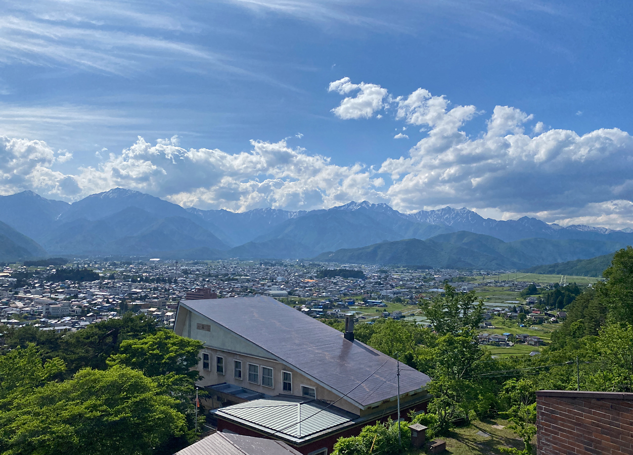 ここでは「北アルプス周辺の自然と人」について学ぶことができるとともに、小高い場所にある建物の三階からは、白馬の山々を一望できます。大町市街からも近いのでぜひ気軽に立ち寄ってみてください。