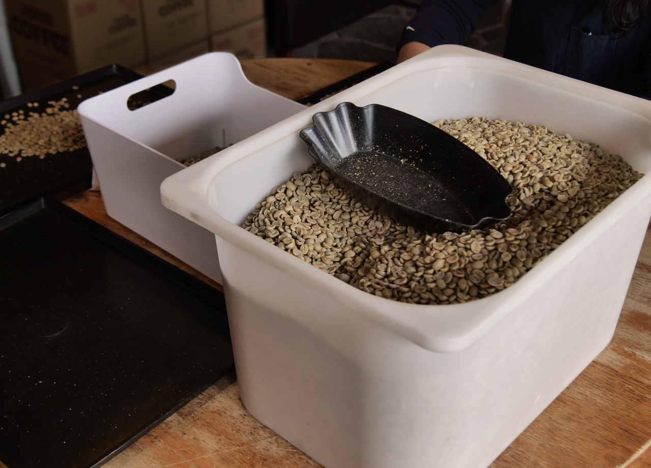 森を抜けた先に広がる中山高原の一角にある『美麻珈琲』は、大町市美麻エリアにある小さなコーヒー専門店です。水は「女清水」と呼ばれる、標高900mの居谷里湿原の湧水を使用、コーヒー豆は良質なものだけを手作業で選び抜き、提供されるコーヒーは「煎りたて・挽きたて・淹れたて」です。