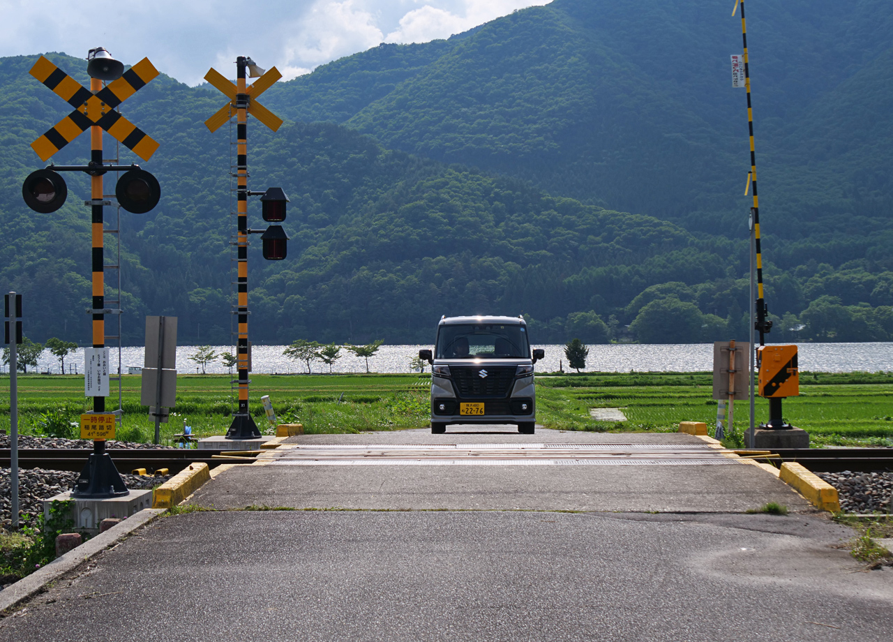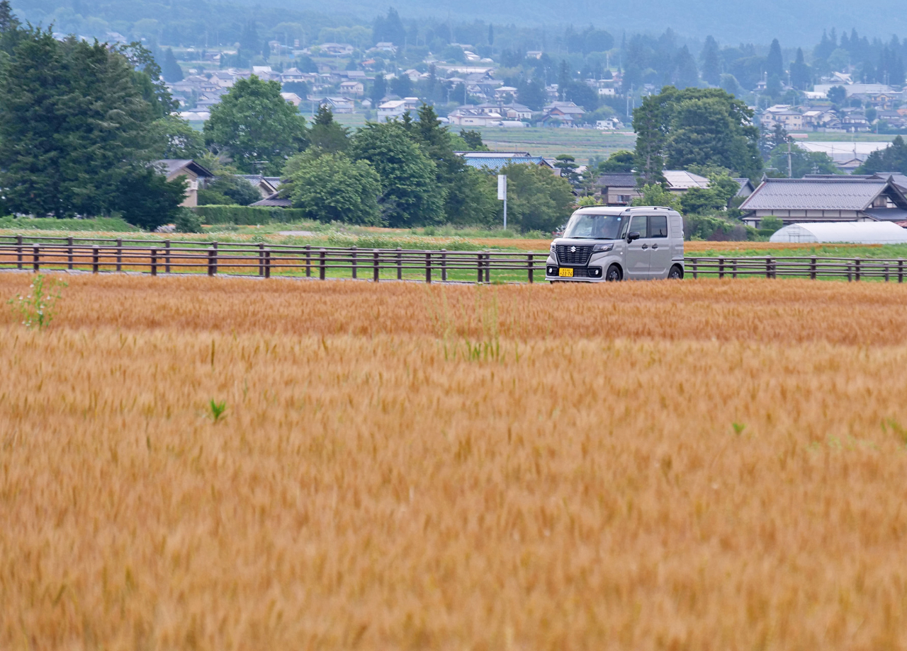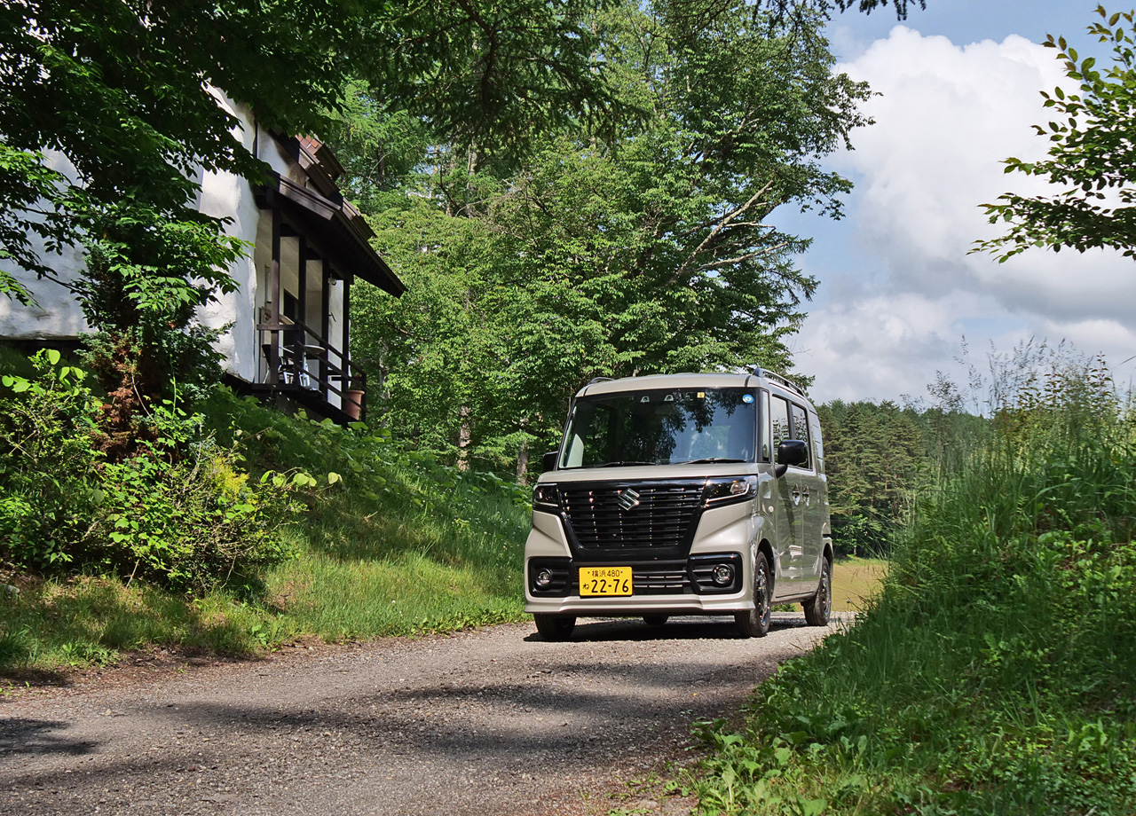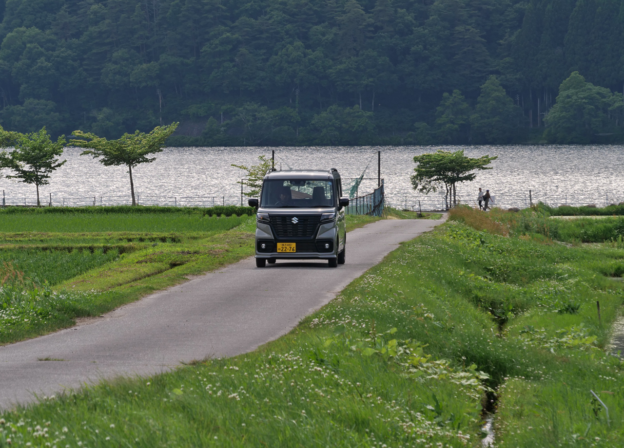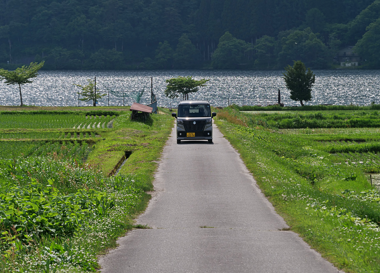 ローカルな小径も難なく進める軽自動車ならではの機動力に、取材もはかどるはかどる…