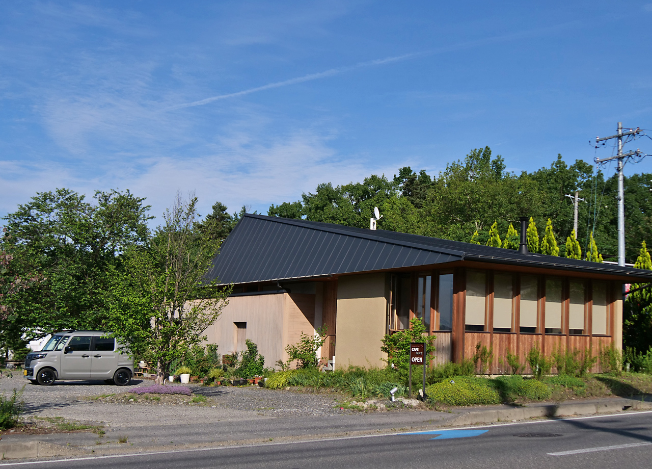 安曇野の山沿いにある『cafe凡凡舎』は、丁寧に焙煎されたこだわりのコーヒーと地元食材を使った食事を楽しむことができるカフェです。