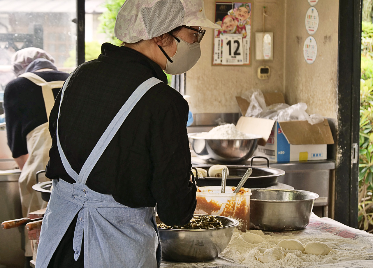 このお店のおやきは、最近では珍しくずっしりとした厚手の生地が使われ、香ばしくかつ食べ応えがあります。種類も豊富で、定番の野沢菜やチーズ、ここでしか食べられない黒糖と味噌を混ぜたおやきなどが楽しめます。