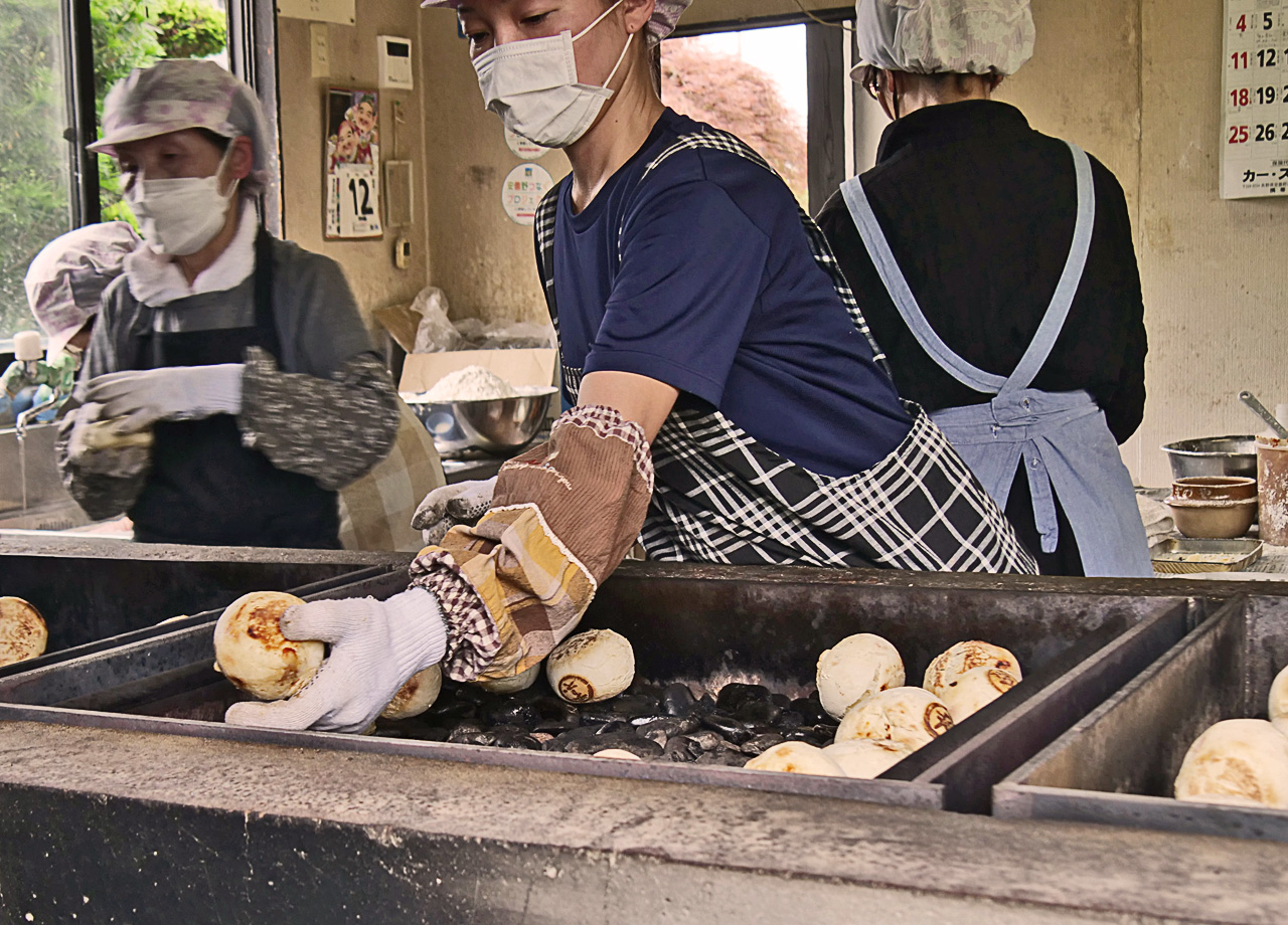 どこか懐かしい雰囲気といい香りが漂う『うしこし』は、こだわりの石焼きで作る「おやき」の専門店です。ひとつひとつ手作業で丁寧に作られたおやきを焼く作業を眺めながら購入することが出来ます。