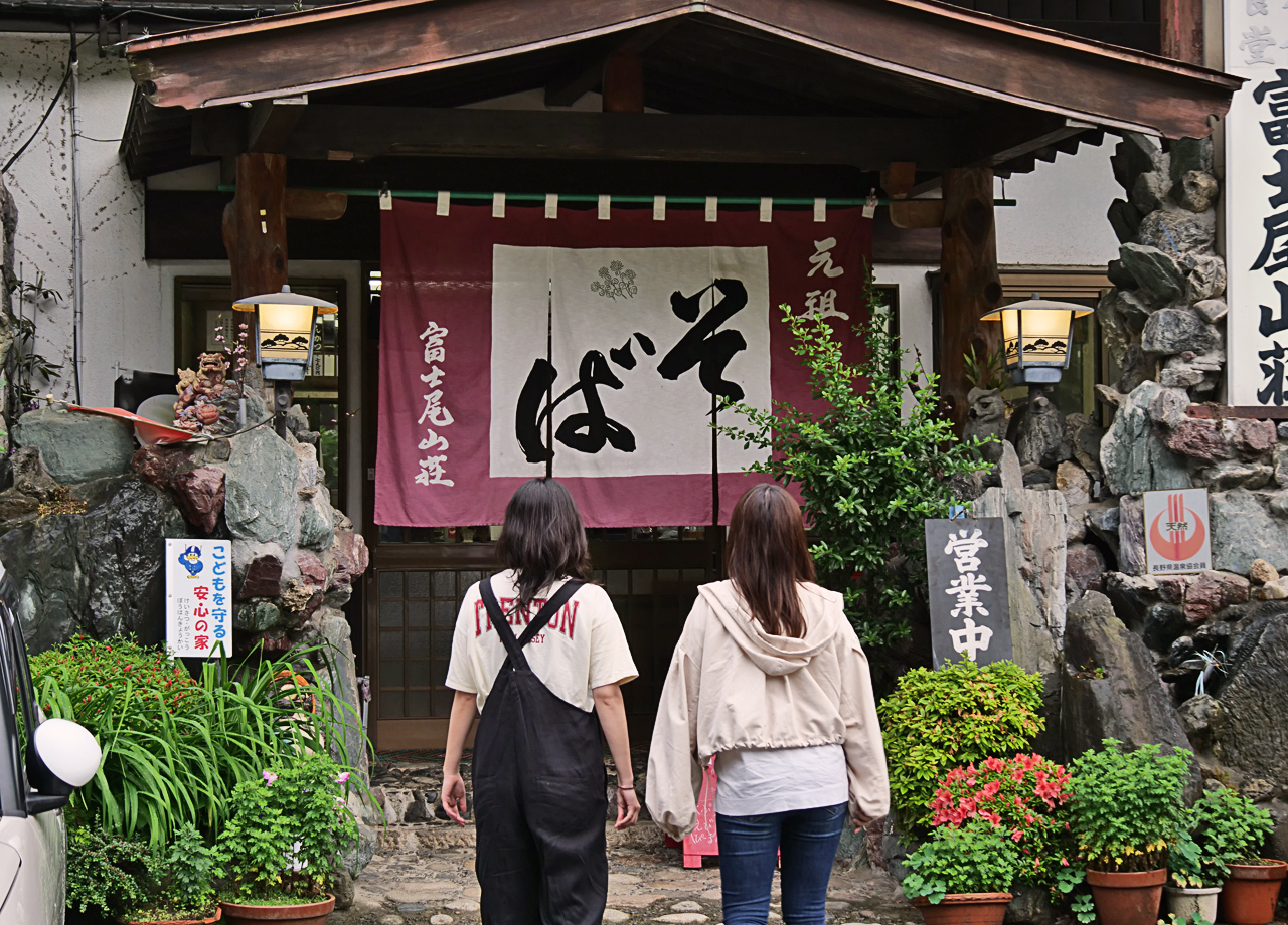 源泉掛け流しの温泉と安曇野の山の水で打った九割蕎麦を楽しめるお宿『富士尾山荘』。温泉は神話の源泉と言われる「中房の湯」で、歴史のある温泉です。