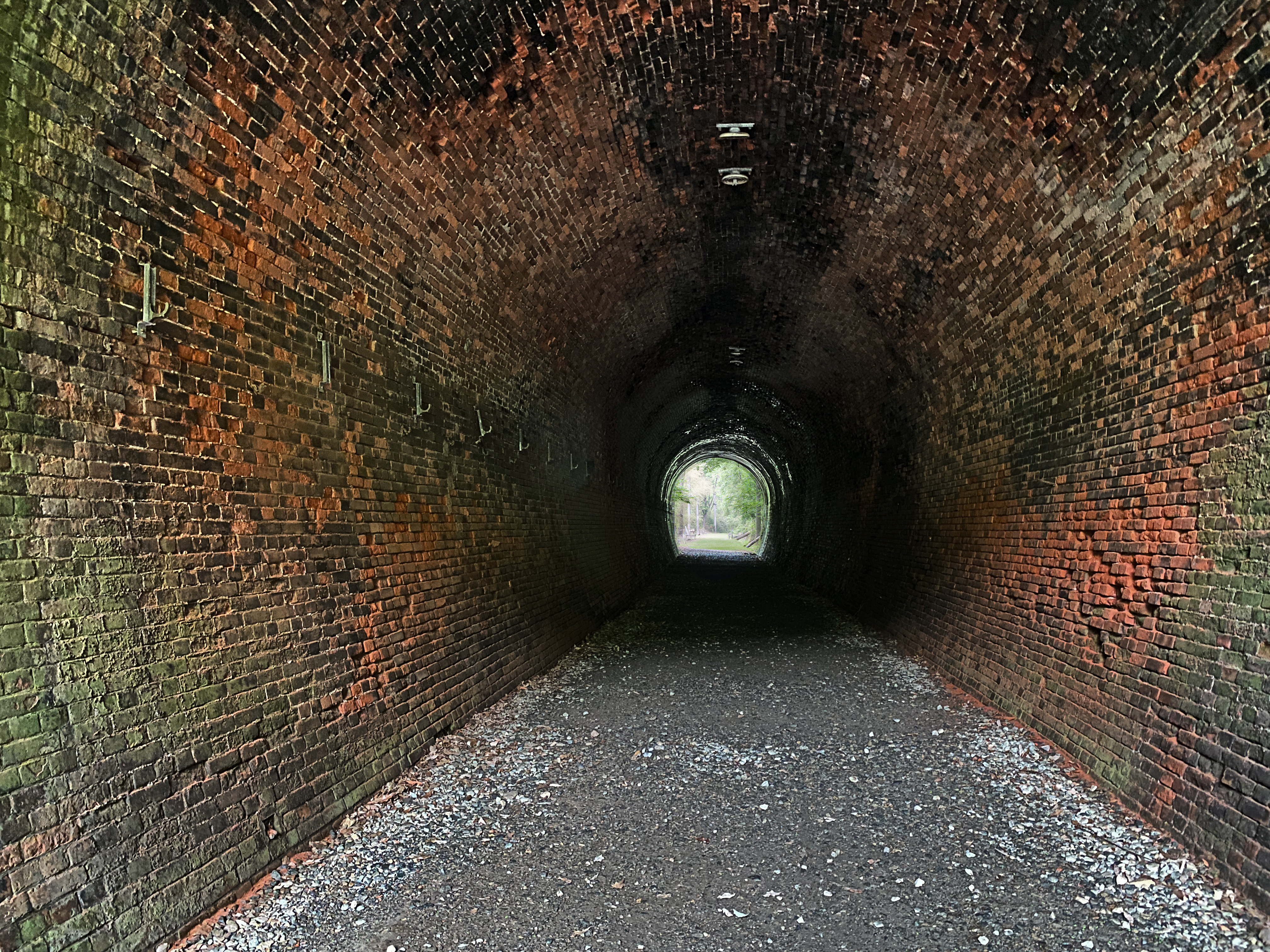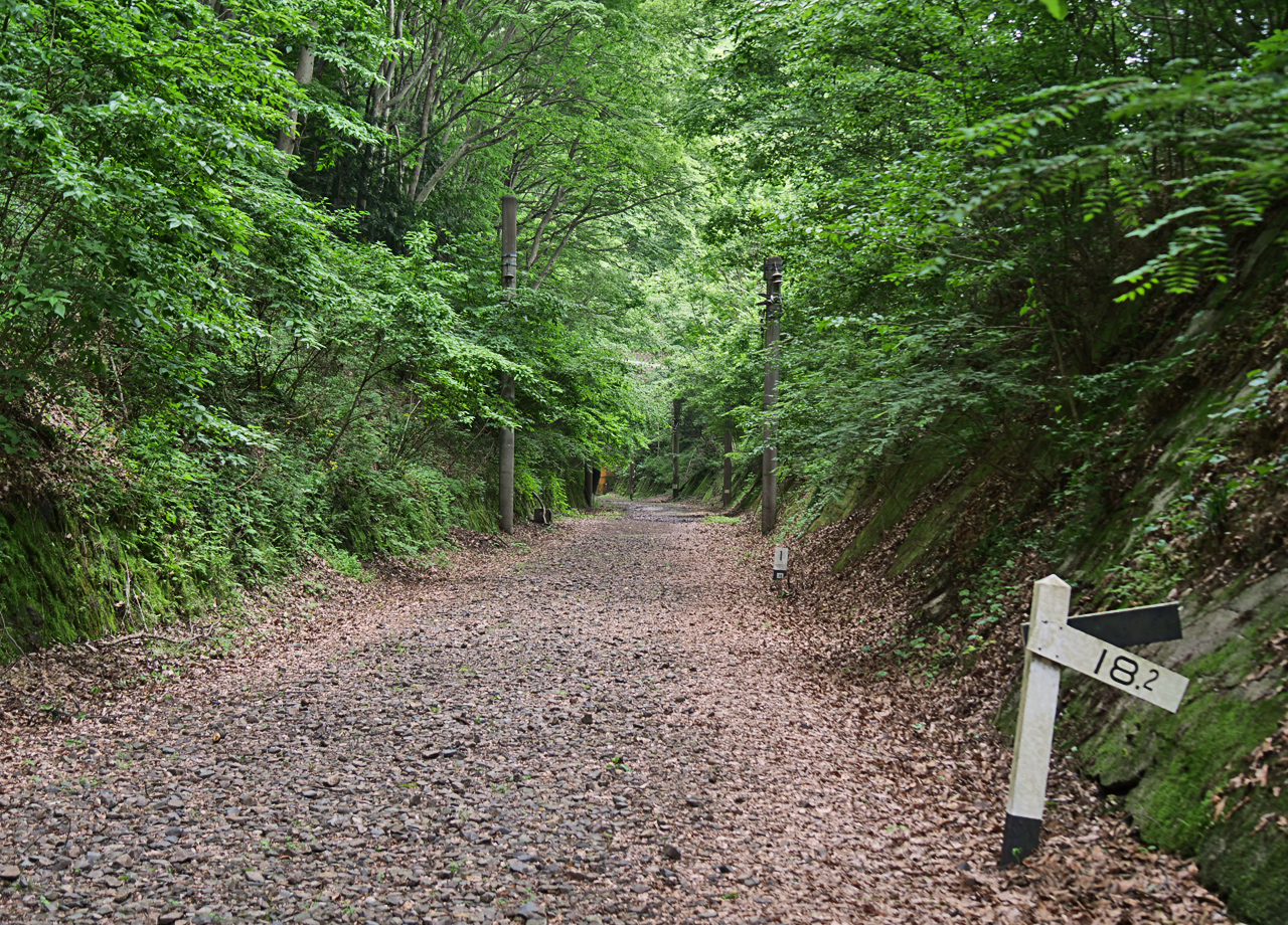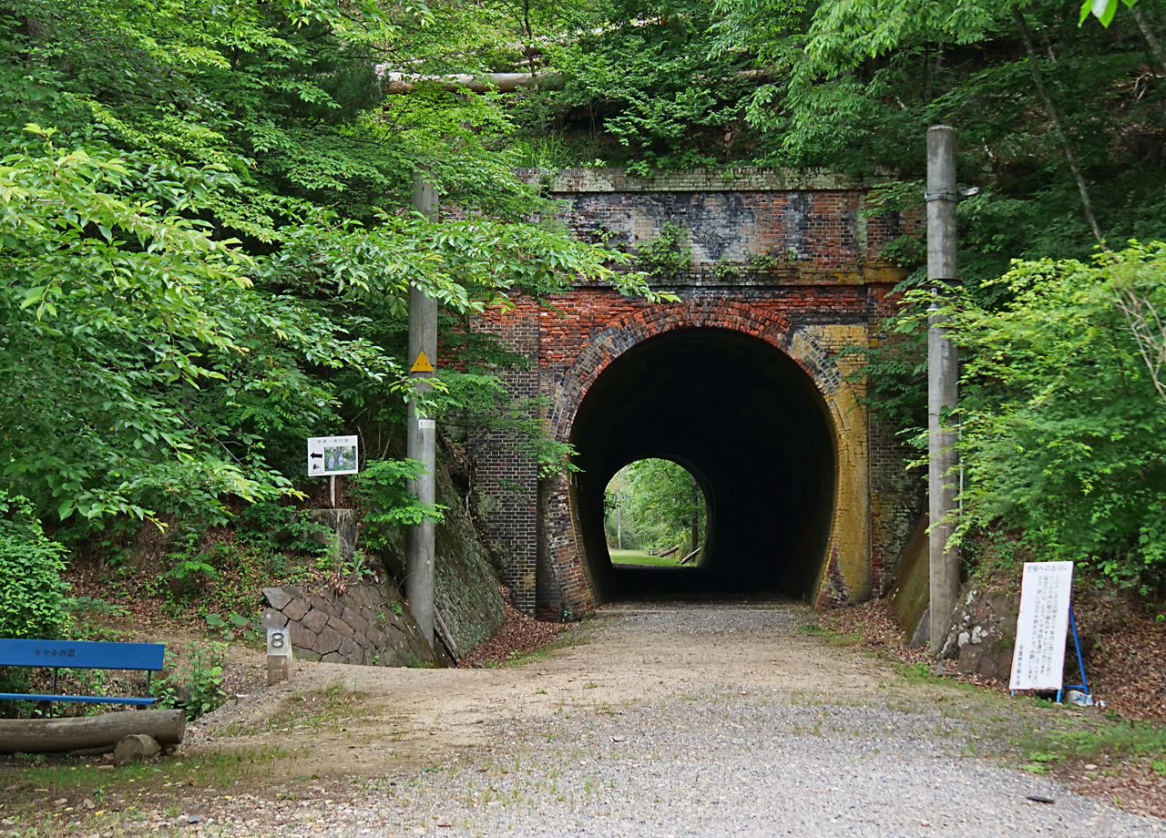 遊歩道には随所に鉄道の痕跡が残り、レンガ造りで趣あるトンネル内の壁には、SLが通っていた当時の黒い煤(すす)が残されているなど、廃線ウォーキングを楽しむことができます。