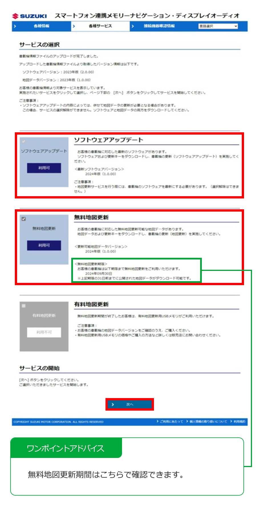 無料地図更新が利用不可となっている場合