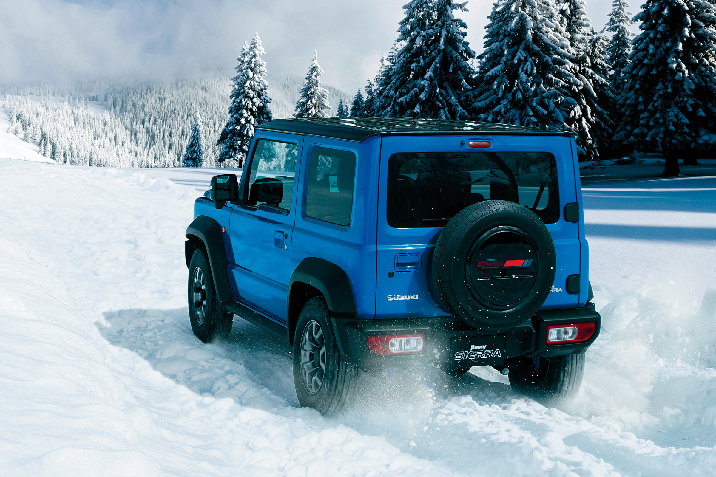 *雪道ではタイヤチェーン・スタッドレスタイヤなどの滑り止めを装着し、安全運転を心がけてください。*スペアタイヤハーフカバーデカールは販売会社装着アクセサリー(別売)です。