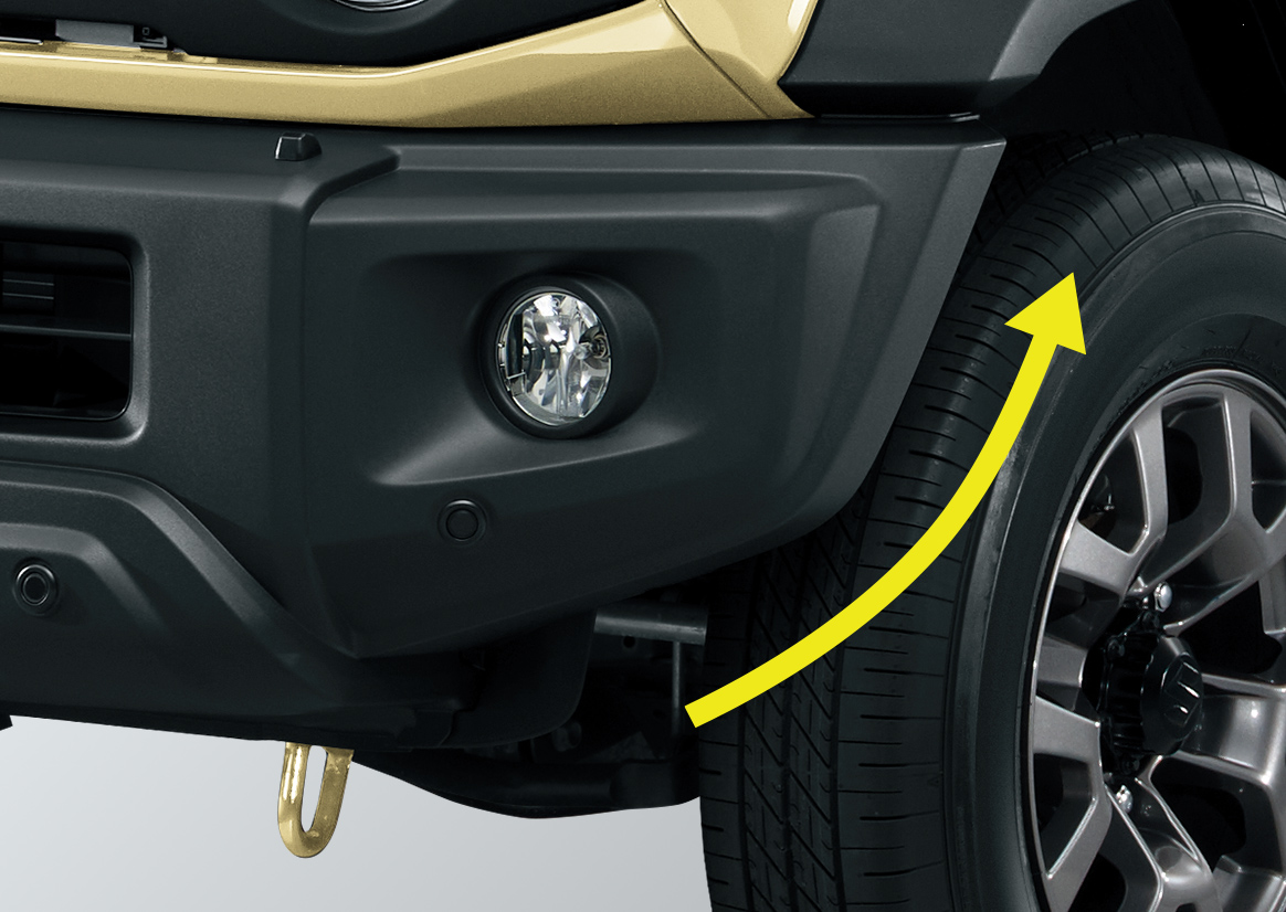 高い走破性をサポートする、切れ上がった形状のバンパーコーナー。