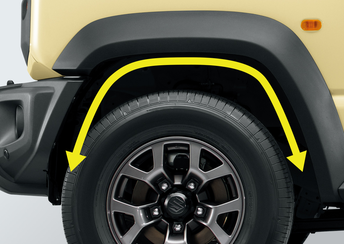 タイヤ交換などの整備がしやすい台形ホイールアーチ。