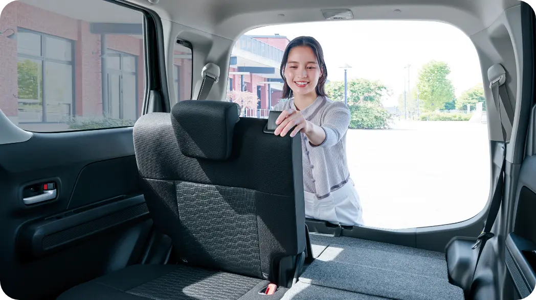後席を倒せば段ボールが3〜4箱積める。