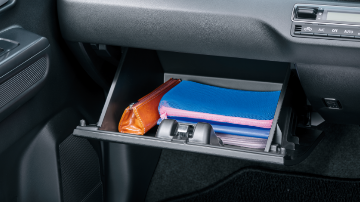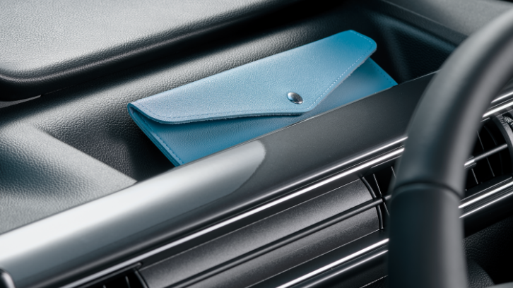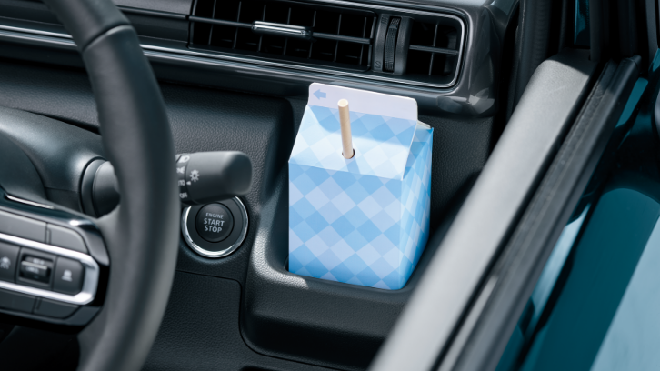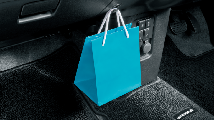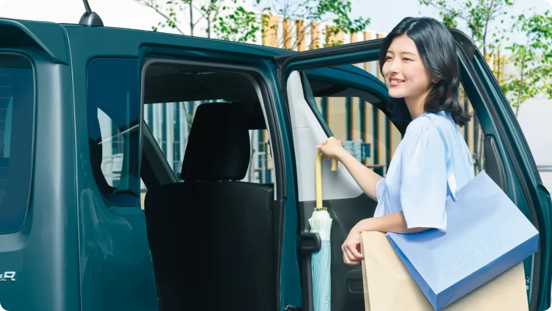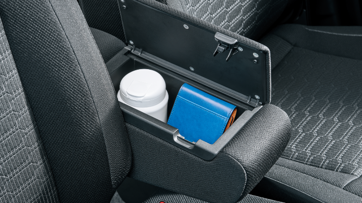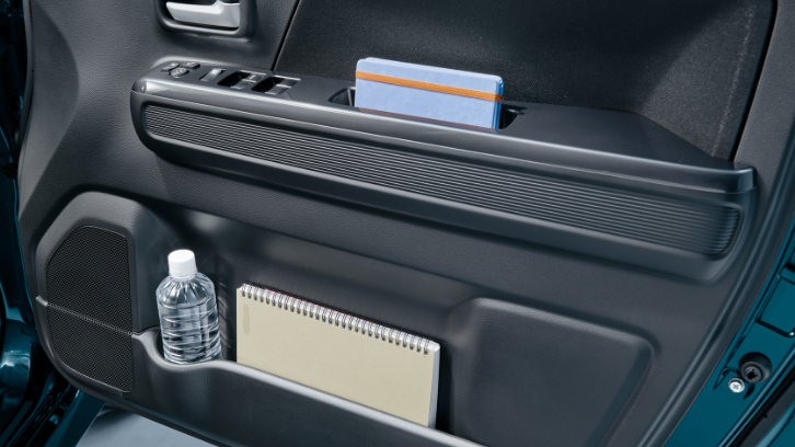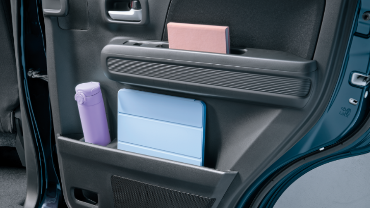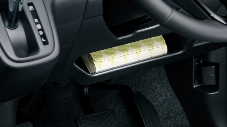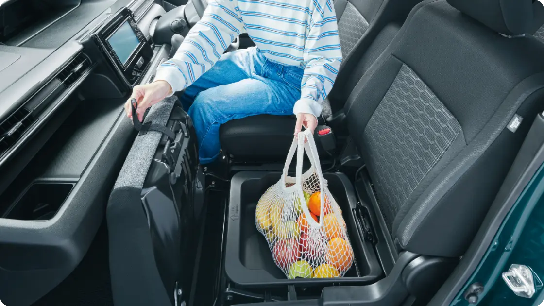 濡れた傘もスマートに収納できる専用ホルダーは、雨水が車外に排出される構造。助手席下の大容量の収納や、500mlのパック飲料もしっかり置けるドリンクホルダーなど、細かな日用品もすっきり収められる収納を取り揃えました。