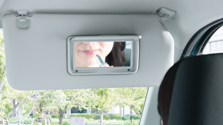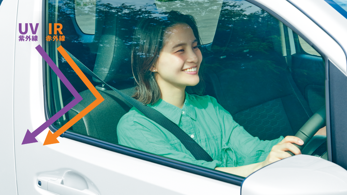 車内を日差しから守るUVカットガラスに、かじかんだ手を素早くあた