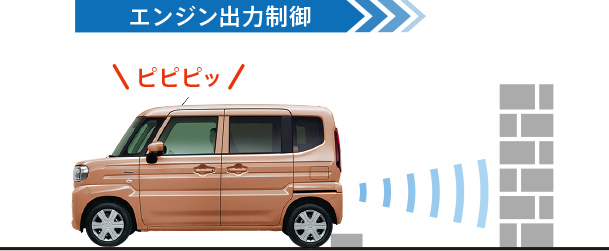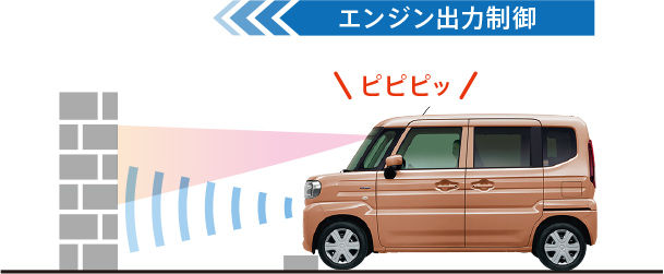 駐車場などで前方に壁などがあるにも関わらずシフトを前進の位置などでアクセルペダルを強く踏み込むと、エンジン出力を自動で抑制。急発進・急加速を抑え、踏みまちがいなどによる衝突回避に貢献します。