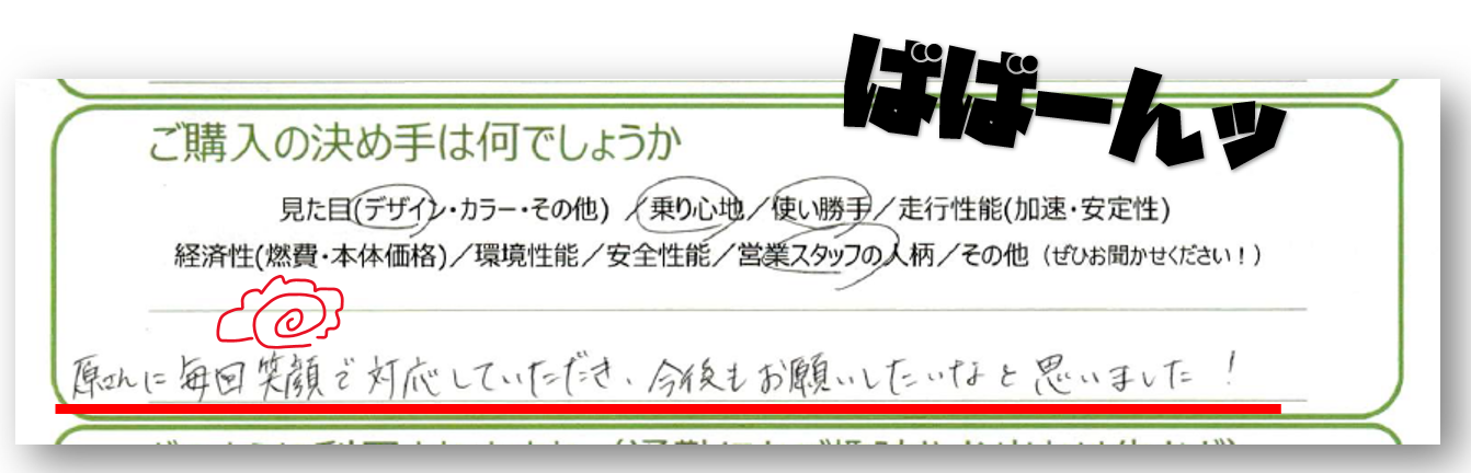 なんとKさまにご納車時のアンケートで