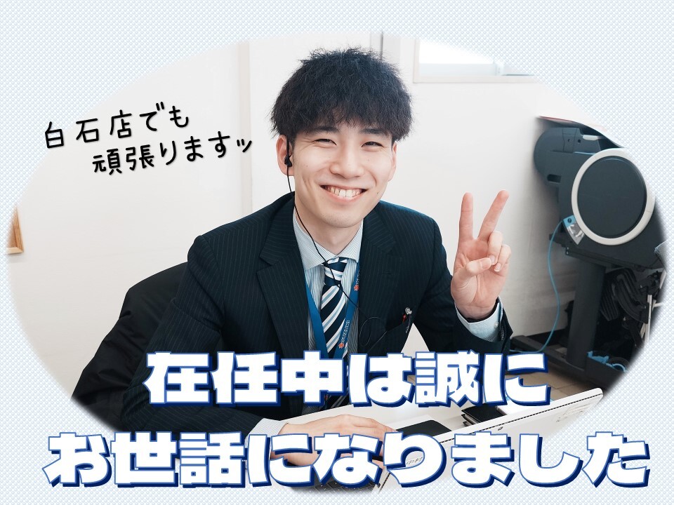 わたくし中村はスズキアリーナ白石店へ異動となりました。