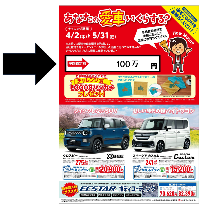 予想した愛車の査定額を記入して持って来て下さい