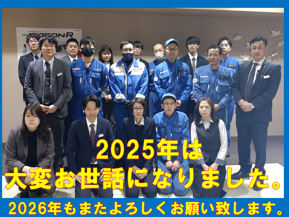 その他 2025.12.26 2025年大変お世話になりました 2025年12月26日 今年最後の営業日となりました。 一年間、皆様のおかげで 締めくくることができそうです。 今年も一年、大変お世話になりました。 2026年も、お車のこと、保険のこと、 タイヤのこと等々・・・ お客様のご依頼に こたえられるよう頑張っていきますので どうぞよろしくお願いいたします。 年明けは、1/4(日)から営業を開始し 初売りを開催いたします。 皆様のお越しをお待ちしております。