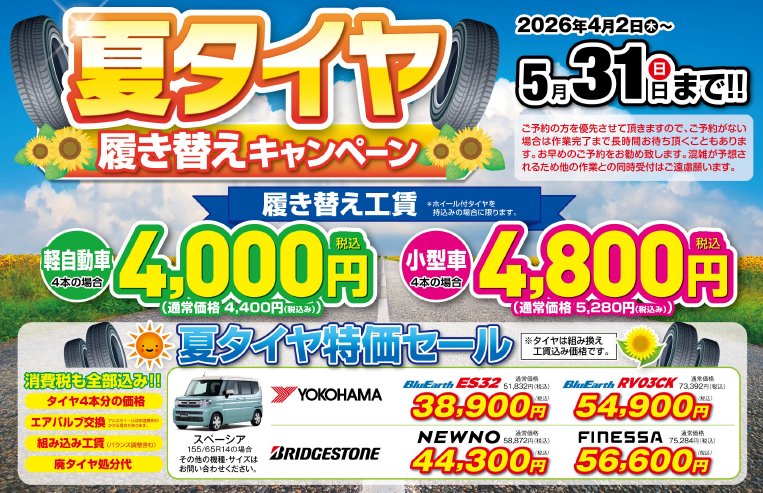 4月からは、夏タイヤ履き替えキャンペーンが始まります