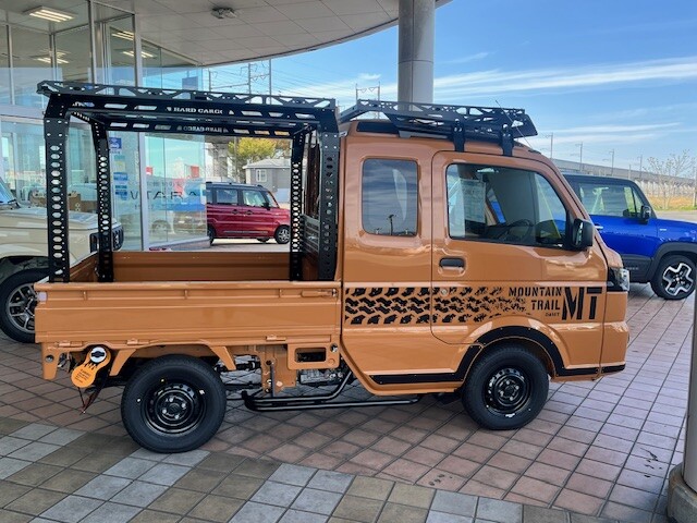 新車情報 2026.04.30 ★☆スーパーキャリイXリミテッド、ハードカーゴ仕様へドレスアップ☆★ みなさまこんにちは! いつも当店ブログをご覧いただき ありがとうございます スーパーキャリイ Xリミテッド ハードカーゴ仕様に ドレスアップしました! 細かい装備を 見ていきましょう! ベースキャリア ルーフラック キャリアラック ベースキャリア専用追加バー2本セット ↓↓↓ 左右と後ろはこんな感じです! ↓↓↓ キャリアユーティリティパネル ↓↓↓ ランニングパイプ ↓↓↓ ルーフネット ↓↓↓ マッドフラップ カラープロテクター ↓↓↓ フューエルキャップ フューエルフラップ ↓↓↓ 仕事も遊びも『本気仕様』 細部までこだわりの詰まった とっておきの1台を ぜひご覧くださいませ! みなさまのご来店 お待ちしております
