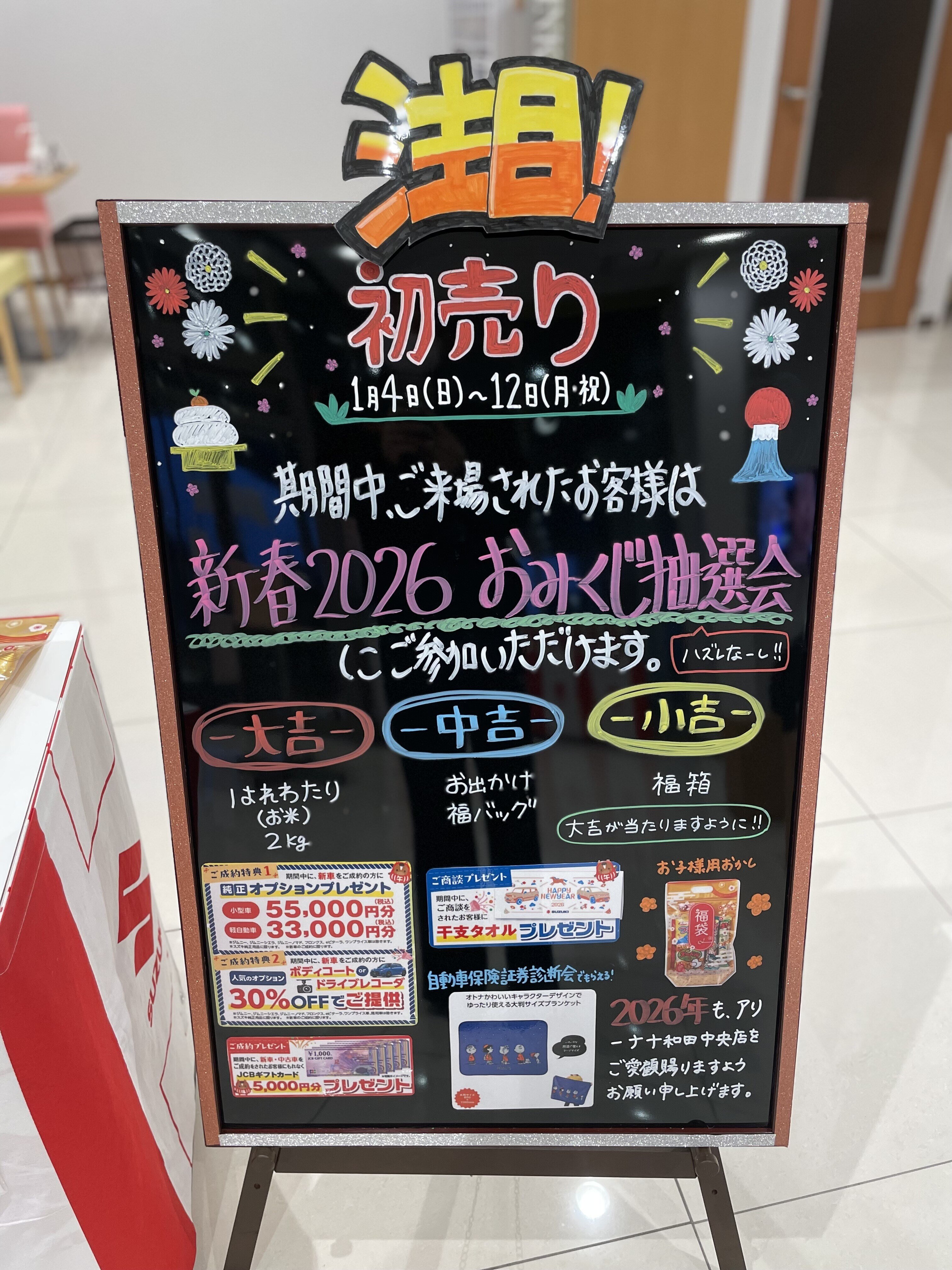 イベント/キャンペーン 2026.01.05 初売り開催中ですよ~!!! キャンペーン期間:2026.01.04~2026.01.12 おっはようございま~す 初売り 開催中ですよ~~~ 昨日はたくさんのご来場ありがとうございました この調子で残りの1週間も 盛り上げていきます 【仲良しトリオ召喚】 楽しそう。笑 斗沢の目が究極に細くなってます。笑 店内も初売りっぽくなってますね~ ▼詳しい特典等はこちらをクリック▼ https://www.suzuki.co.jp/dealer/02206951.suzuki-j-aomori/blog/detail/?id=671754