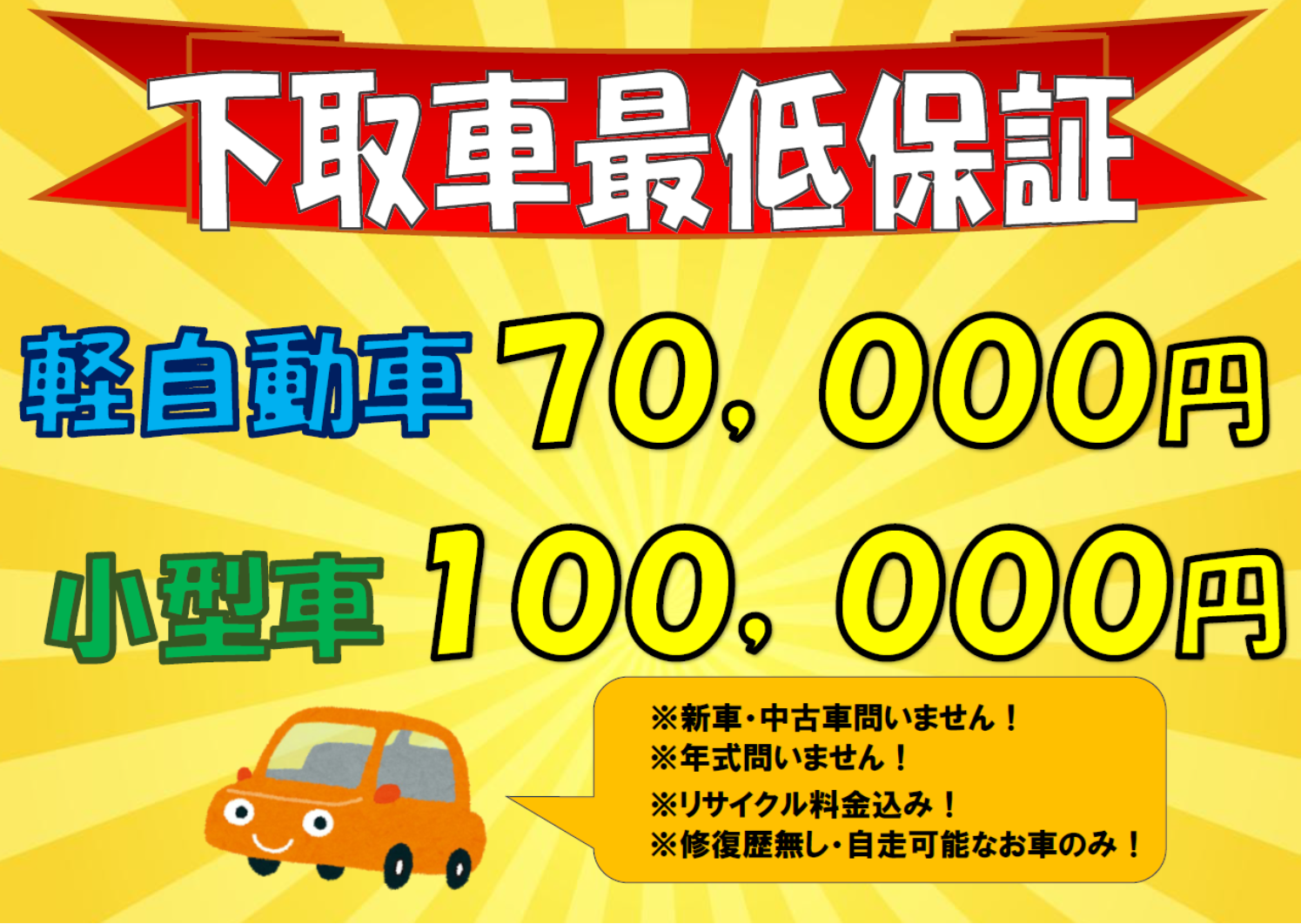 下取り車の価格最低保証も!!