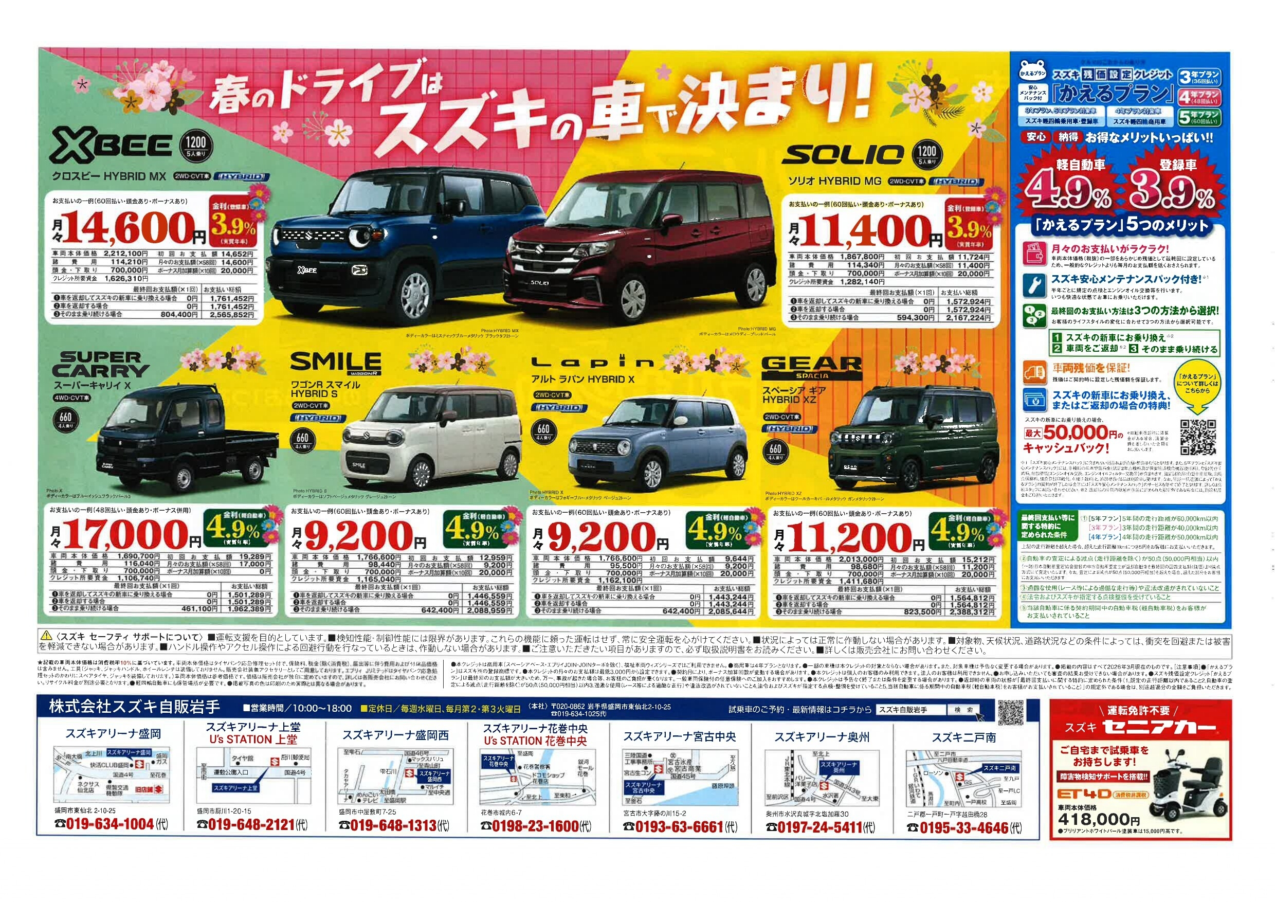 イベント/キャンペーン 2026.04.16 スプリングフェア 2週目に突入しました! キャンペーン期間:2026.04.01~2026.04.26 こんにちは! いつも当店のブログをご覧いただき ありがとうございます ただいま開催中のスプリングフェア! 2週目に突入いたしました! 新車ご成約でもらえる豪華なご成約特典は4月26日(日)まで! 新たなお車で2026年を素敵な1年にしませんか?? みなさまのご来店お待ちしております! スズキアリーナ上堂 019-648-2121