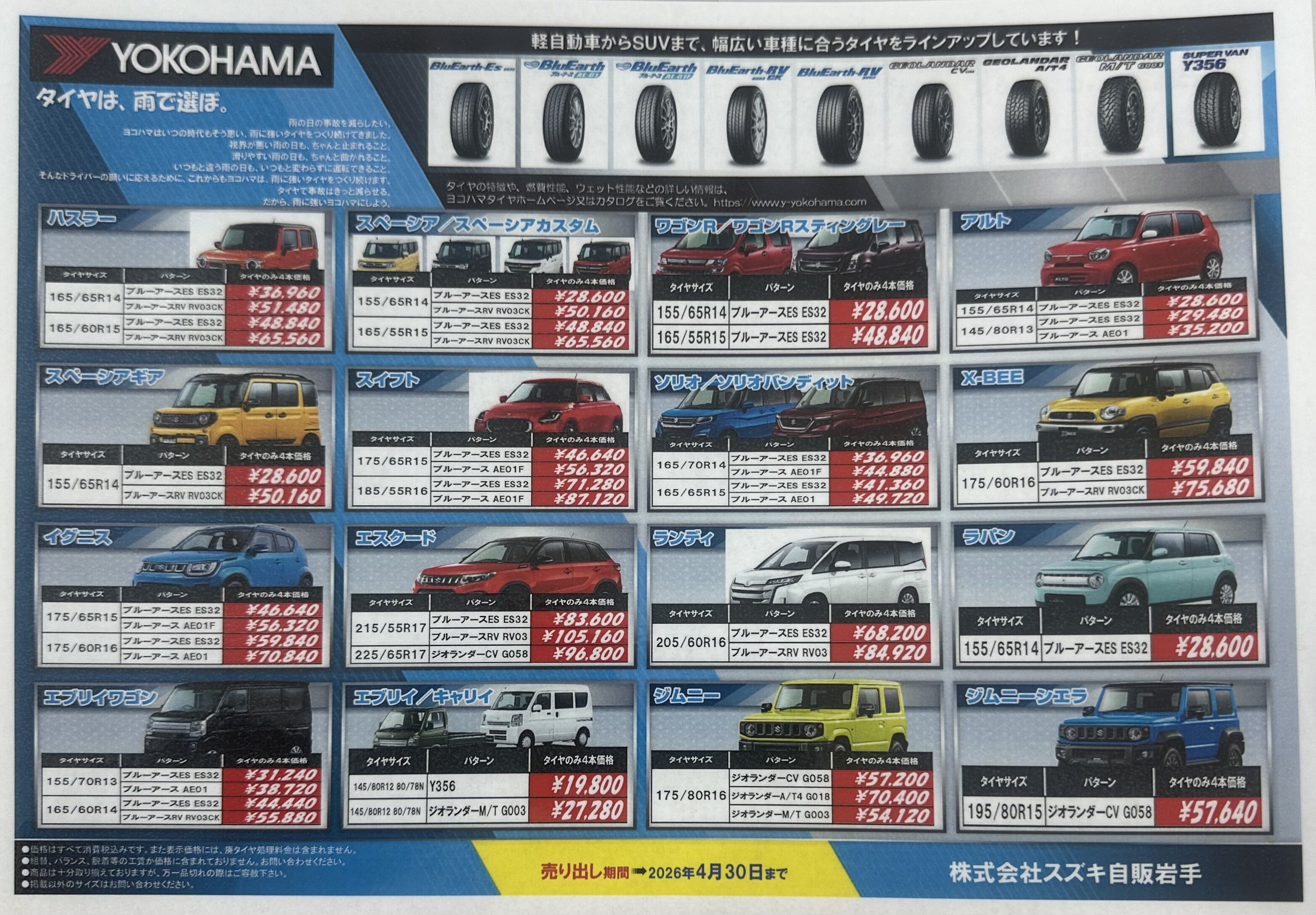 ただいまスズキ自販岩手では、「タイヤキャンペーン」を開催中です!
