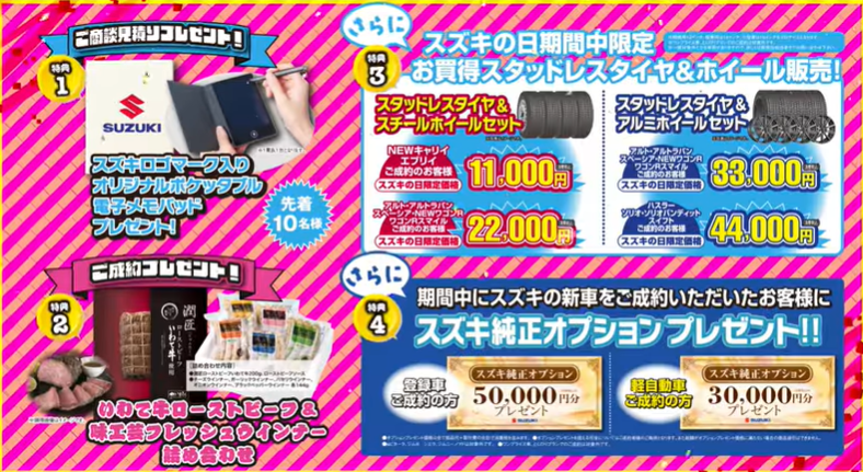 期間中にスズキの新車ご成約いただいたお客様に