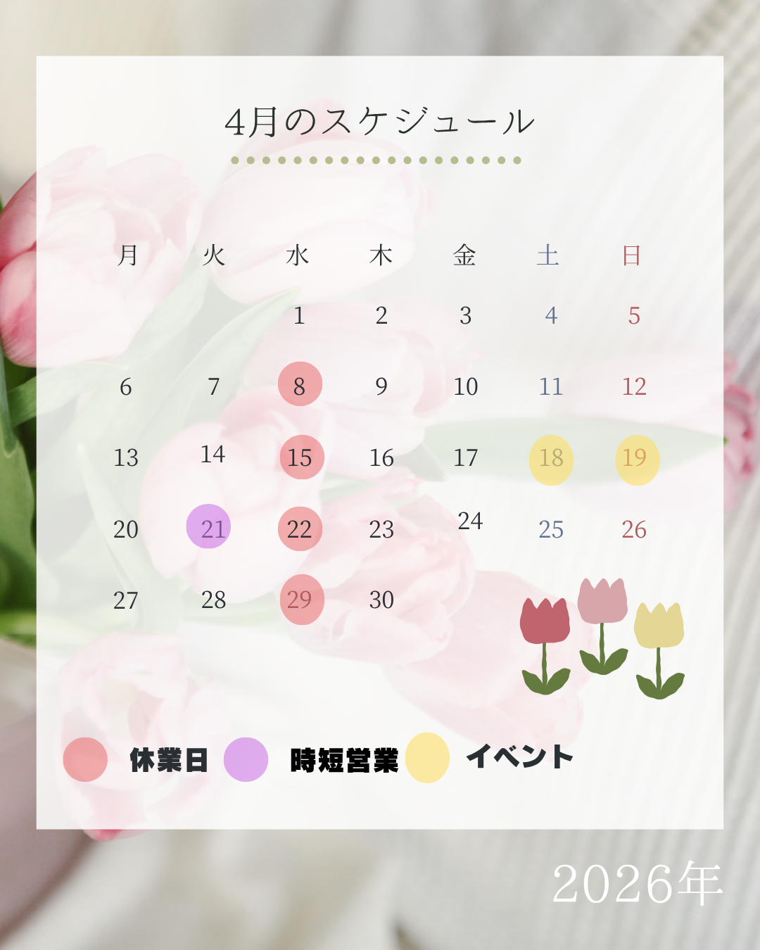 ❁4月の営業時間について❁