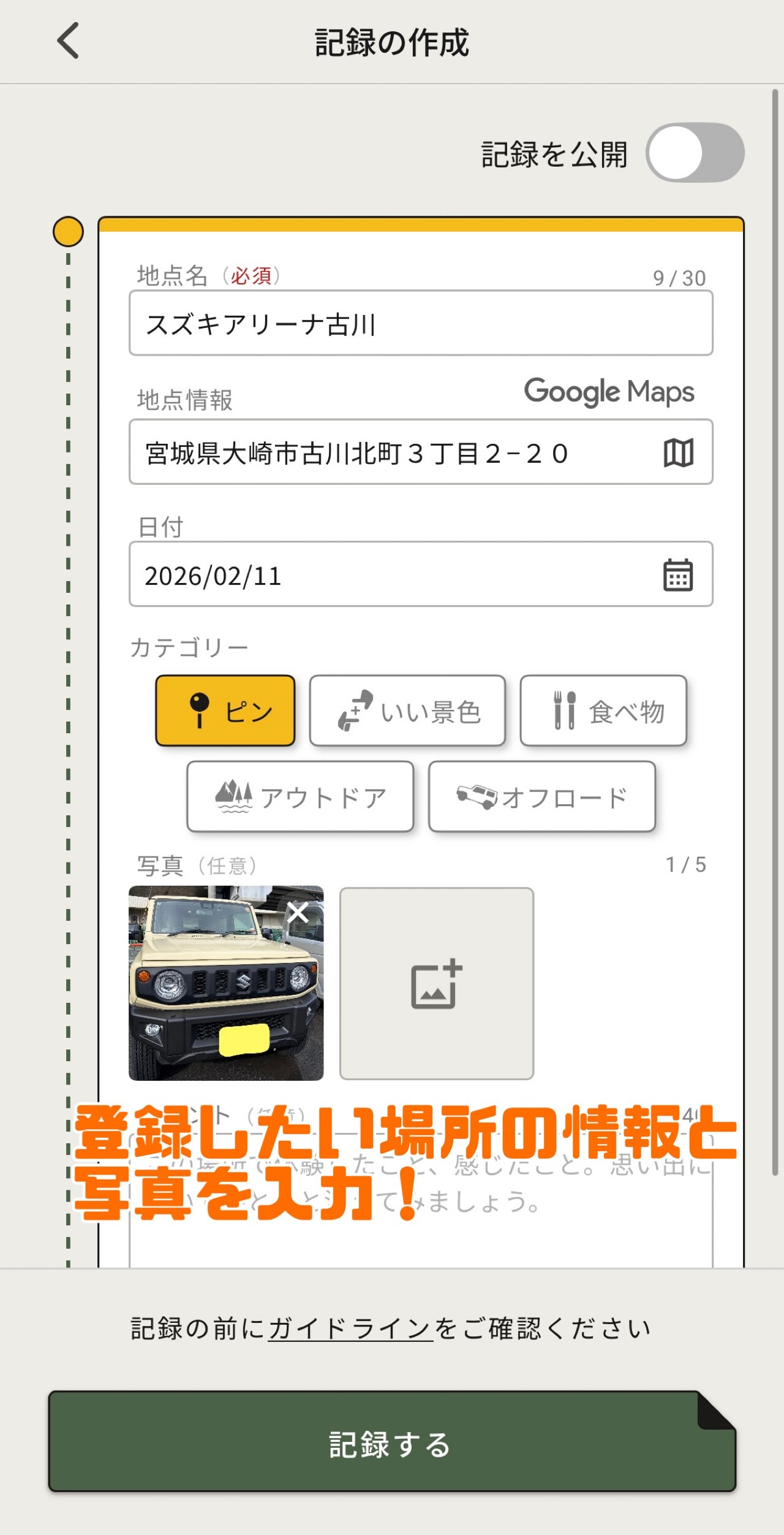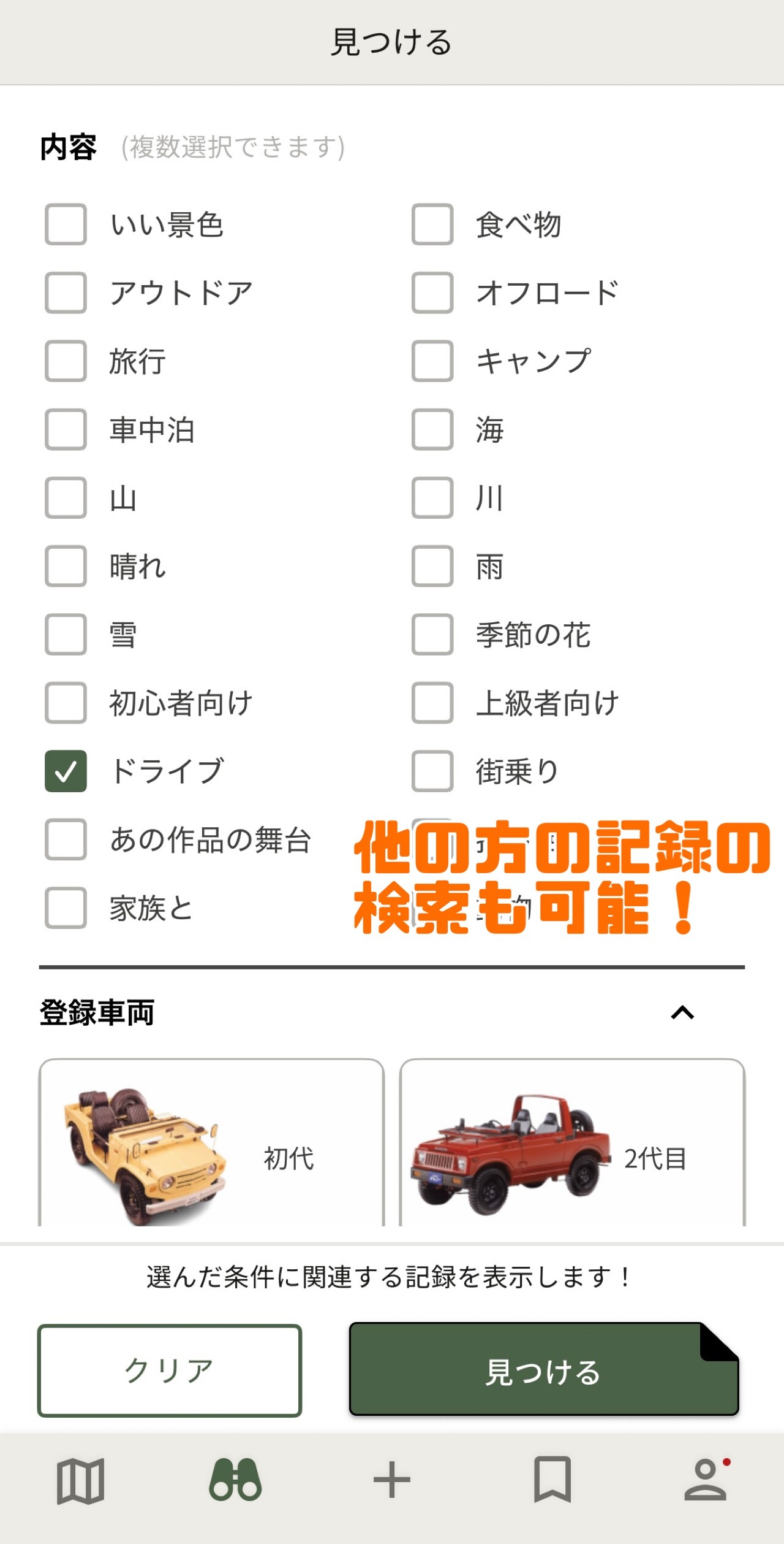 愛車の情報も登録など