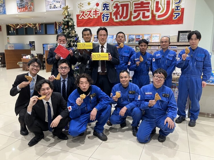 イベント/キャンペーン 2025.12.22 クリスマスコンテストの結果発表~!! 先日まで開催されておりました 2025 クリスマス飾りつけ コンテスト 結果発表~~~~~~!!! スズキアリーナ仙台南が堂々の一位でした!! 一位になったのでみんなでシュークリームとフライドチキンをいただきました クリスマス飾りつけコンテストへご参加いただいたお客様 スズキアリーナ仙台南へご投票いただいたお客様 誠にありがとうございます 来年のクリスマスコンテストも連覇を狙います!! たくさんの方の笑顔になってもらえるような写真を撮ります 今後ともスズキアリーナ仙台南を宜しくお願い致します。