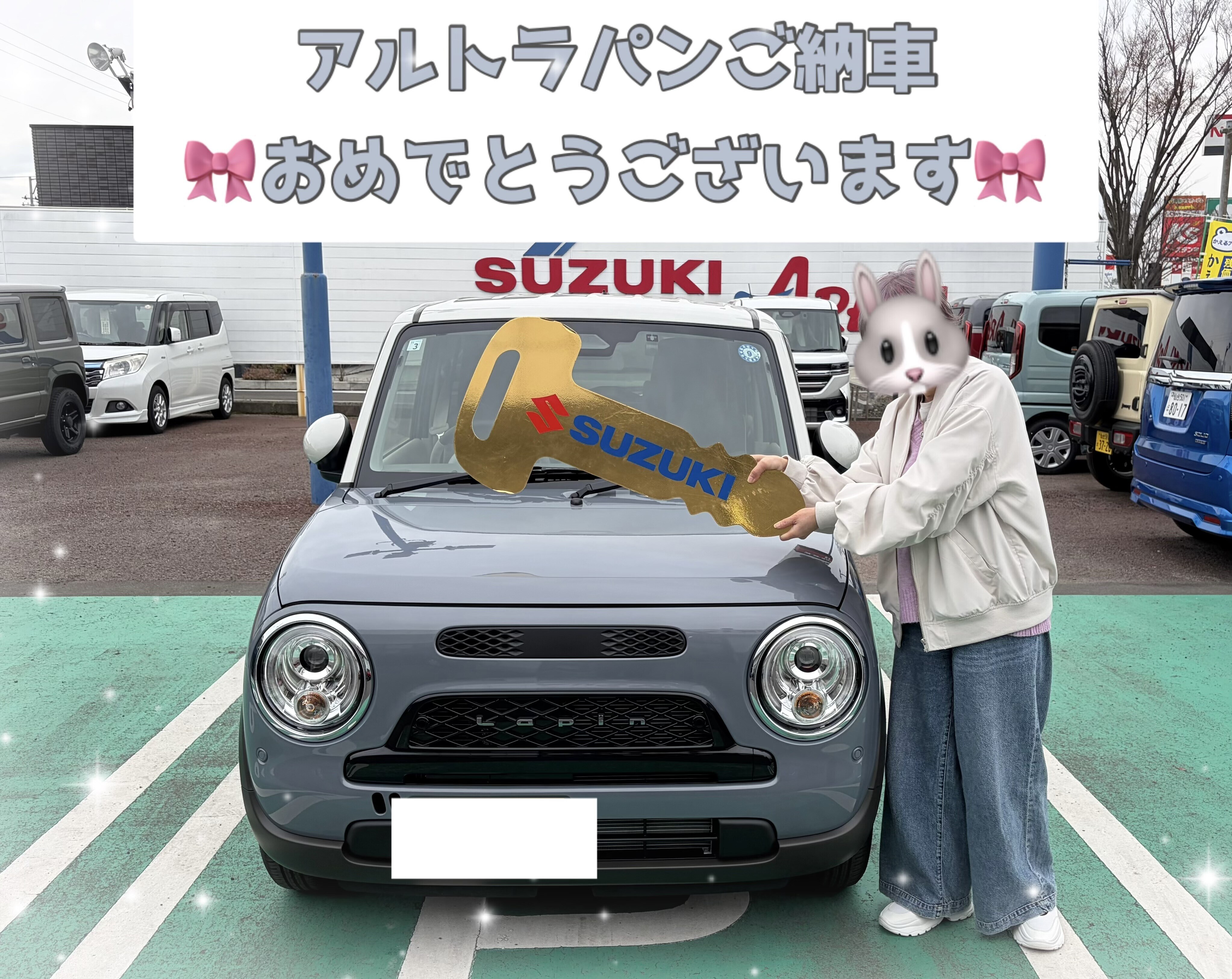 ご納車時もアルトラパンのデザインや付属品を見て、たくさん可愛いと言っていただきとっても嬉しかったです