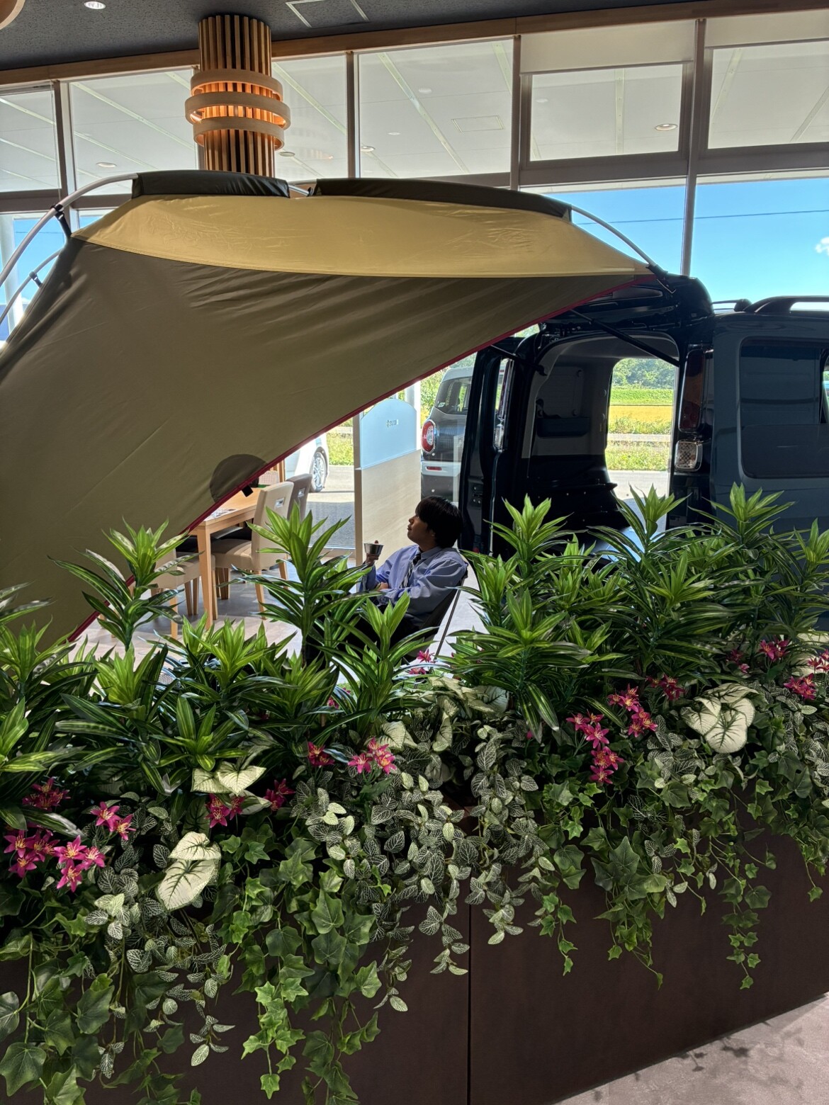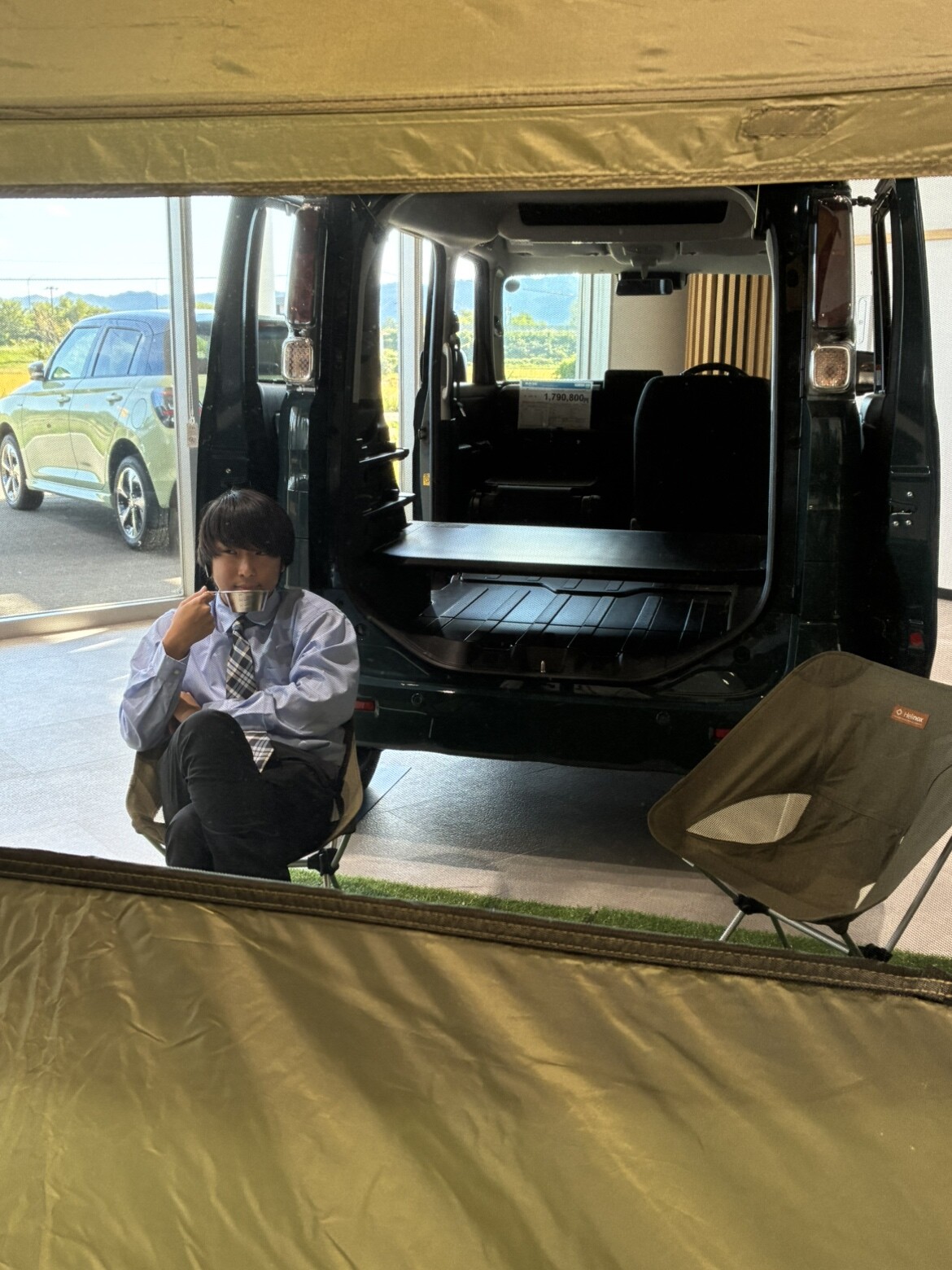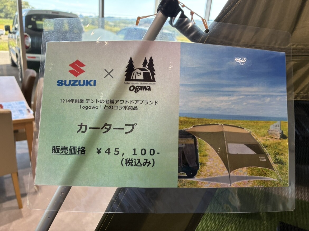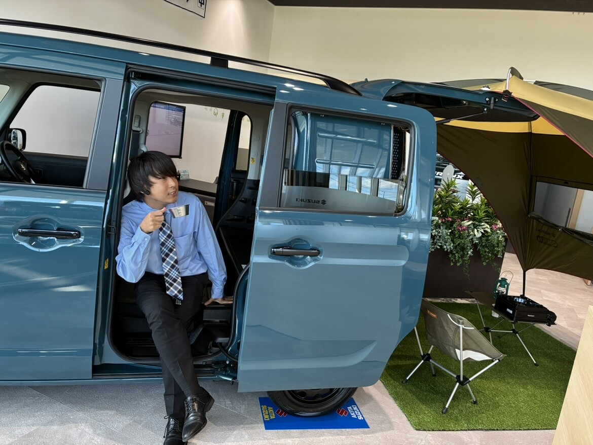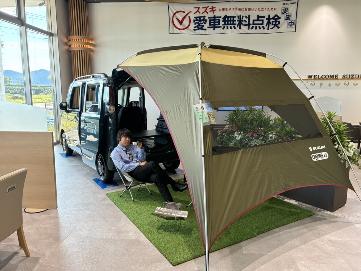 イベントデー 2025.09.24 大舘キャンプ仕様!! いつもブログをご覧いただきありがとうございます 秋田スズキ大館店のきっかわです 大館店では現在キャンプ仕様の スペーシアベースを展示しています フルフラットになり車を最大限に活用しキャンプを楽しむことができます キャンプギアはスタッフの私物です でかでかとそびえ立っているのは 老舗アウトドアブランド 「ogawa」とのコラボ商品 ゆったりした空間でキャンプやバーベキューの お供にピッタリです きっかわは今日ここをキャンプ地にしようと思います