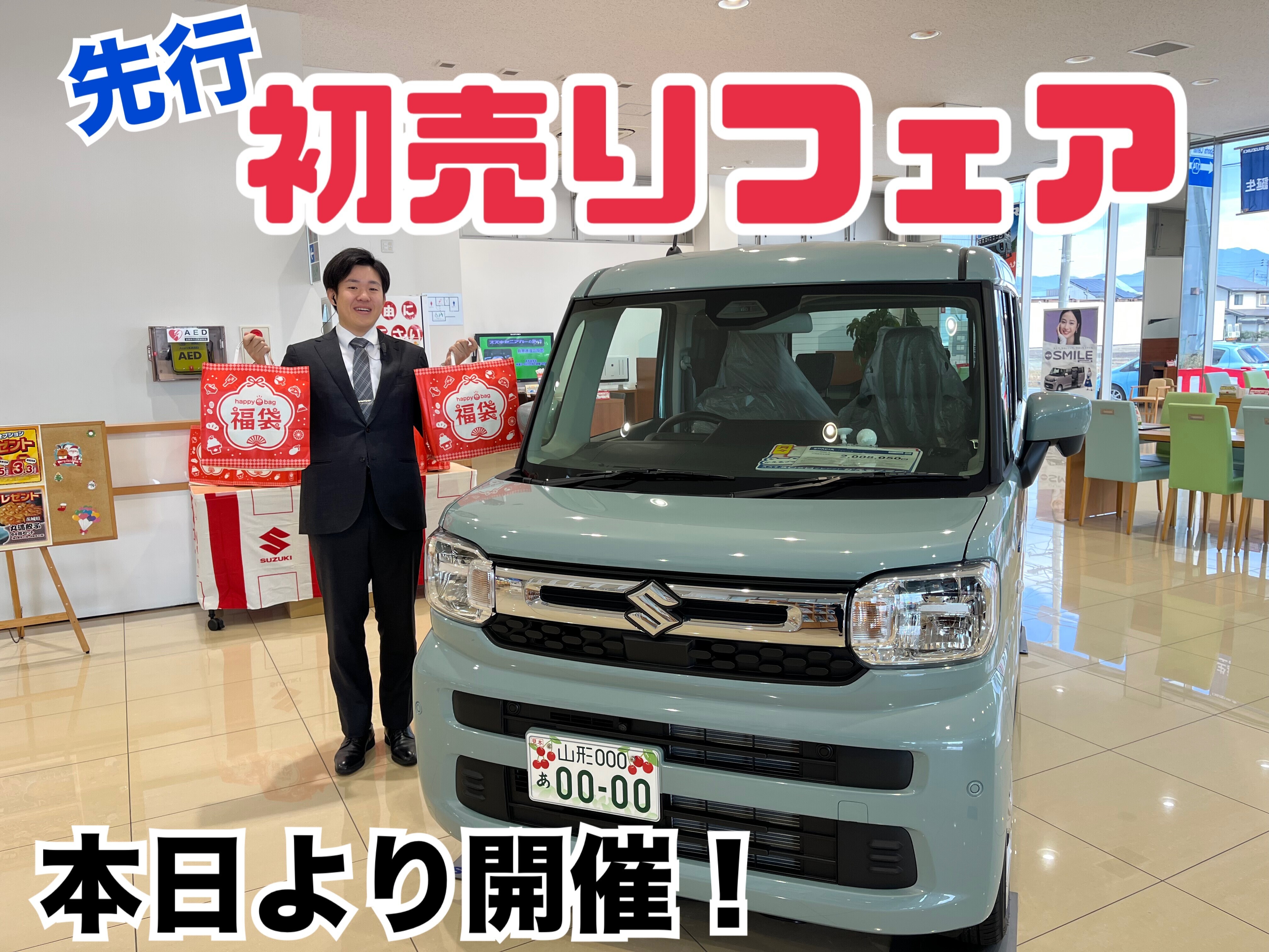 イベント/キャンペーン 2025.12.01 【本日より開催】先行初売り!! こんにちは! アリーナ山形北です スズキでは本日より 先行初売りフェア を 開催いたします 豪華ご成約特典を 多数ご用意しておりますよ~ 特典はこちら ▽ ▼ ▽ ▼ さらに 福袋車もご用意しています 車種などの詳細は営業スタッフまで お気軽にお問い合わせください また 試乗・査定・見積 のいずれかで 福袋をプレゼント 先行初売りで気になるお車を 早めにゲットしちゃいましょう! 皆様のご来店を スタッフ一同心より お待ちしております!!