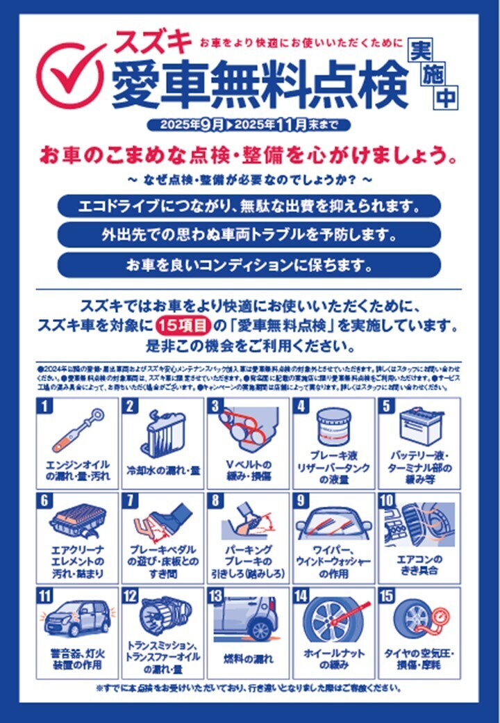 スズキ愛車無料点検がはじまりました!