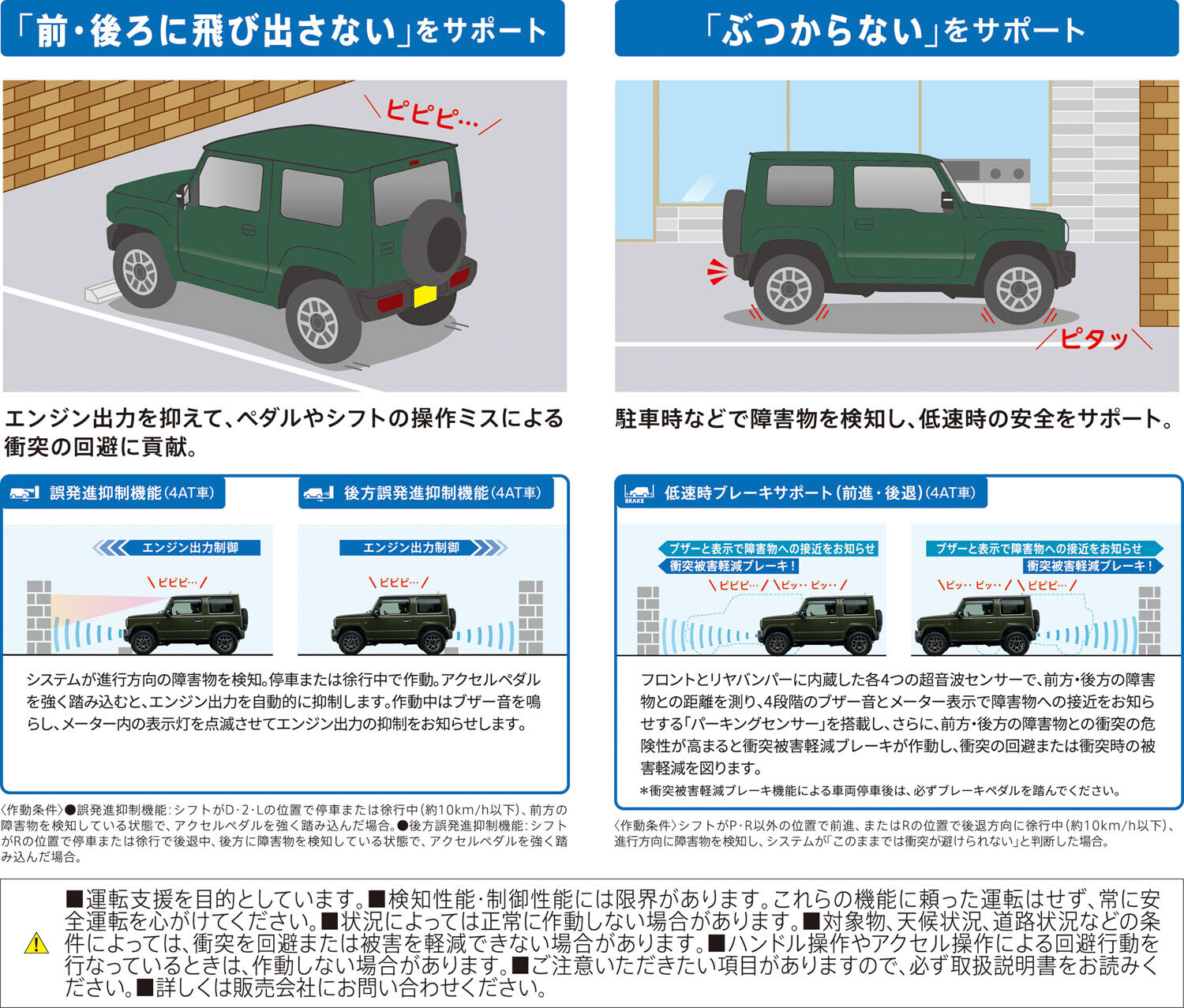 新車情報 2025.11.07 << 新型ジムニー・ジムニーシエラ誕生 >> ジムニー・ジムニーシエラが マイナーチェンジ さらに安全に快適に進化しました 「デュアルセンサーブレーキサポートⅡ」搭載 歩行者や自転車も検知し 事故による被害を軽減 「スズキコネクト」搭載 バックアイカメラ付き ディスプレイオーディオとの連携で さらに使いやすく便利に 見た目は変わらず 装備内容が良くなりました