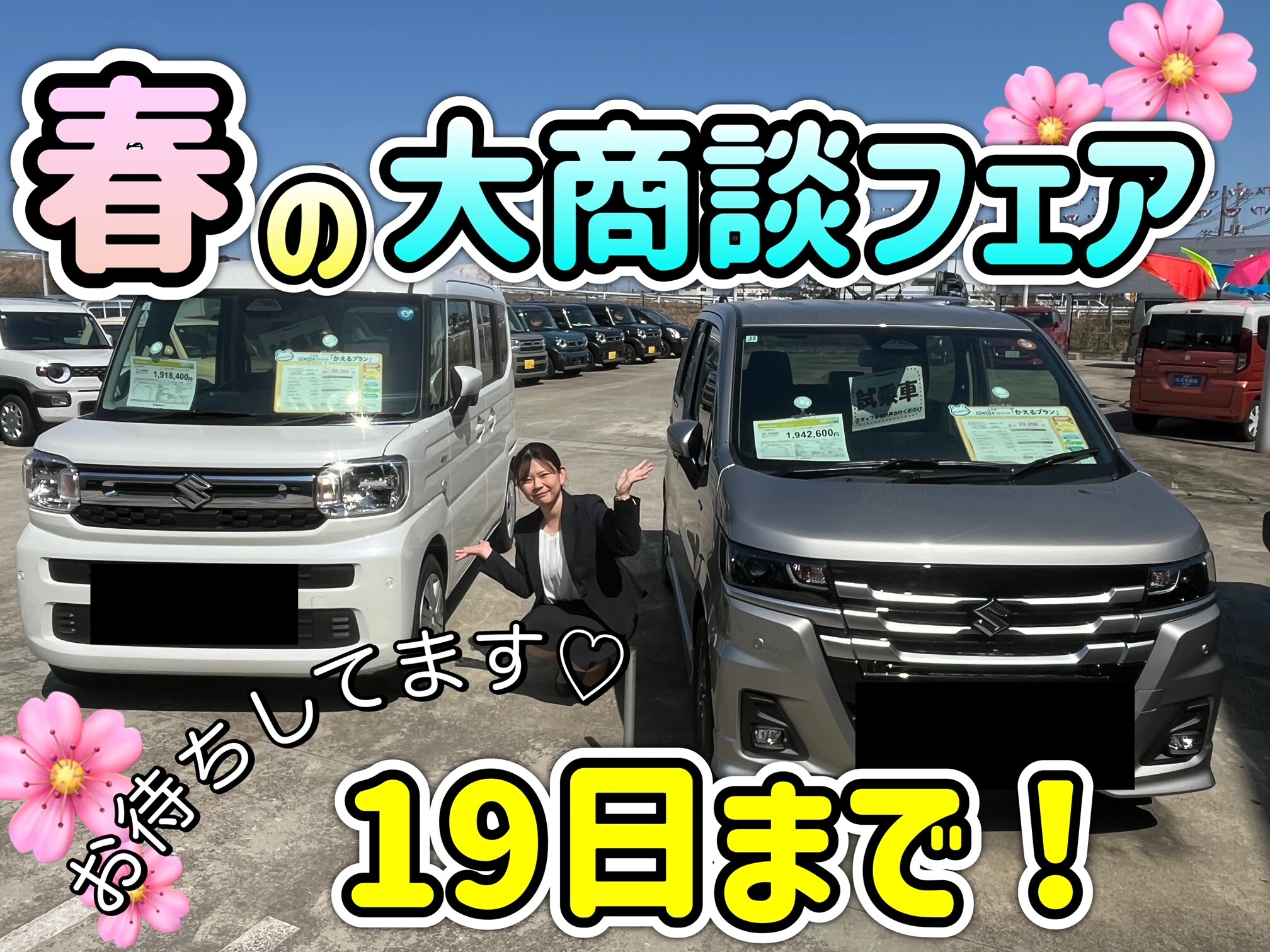 イベント/キャンペーン 2026.04.13 春の大商談フェアでお待ちしています♡ こんにちは アリーナ山形最上 おがさわら です スズキアリーナ山形最上では \ 春の大商談会フェア 開催中 / 今週末19日までですよ~ 期間中にご成約いただくと おいしいグルメもプレゼント 特別装備がついてきてお得な 山形県限定車も勢ぞろい 人気車種の中古車も多数展示中! 新車も中古車もあわせてご相談ください 今週も皆さまにご来店いただけることを スタッフ一同お待ちしております