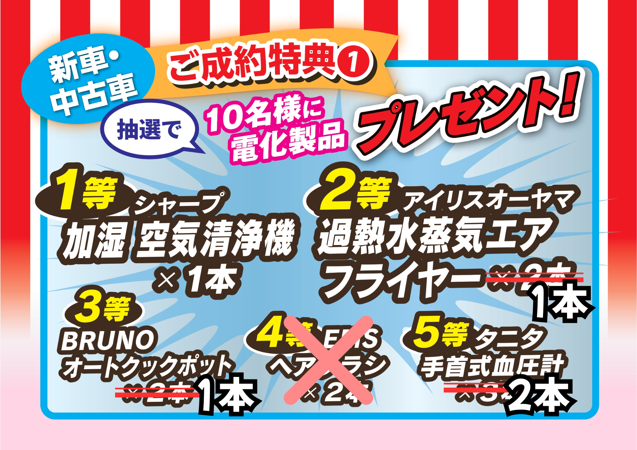 ご成約記念品の電化製品もだいぶ品薄になってまいりました