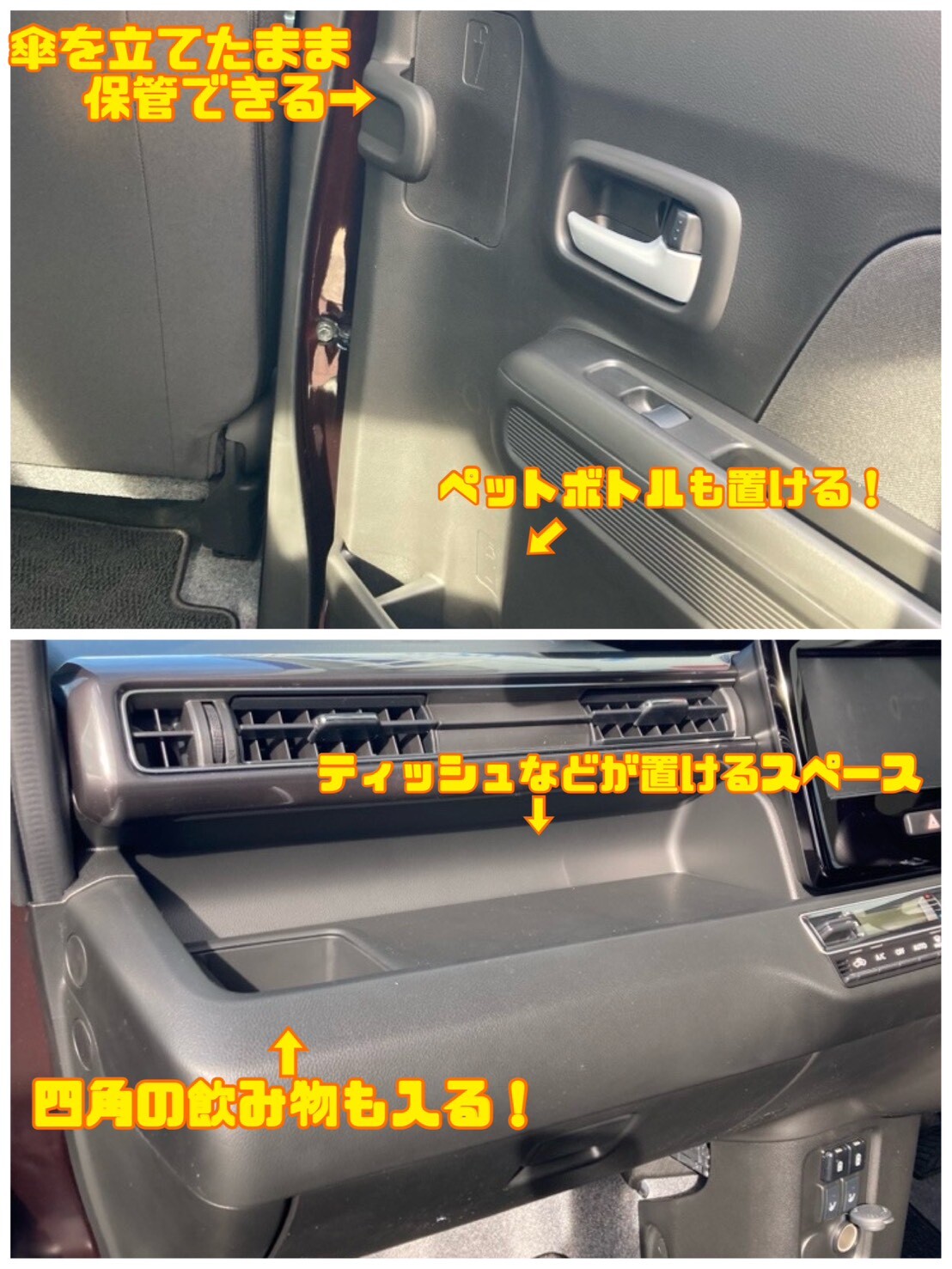 車内の様々な場所に