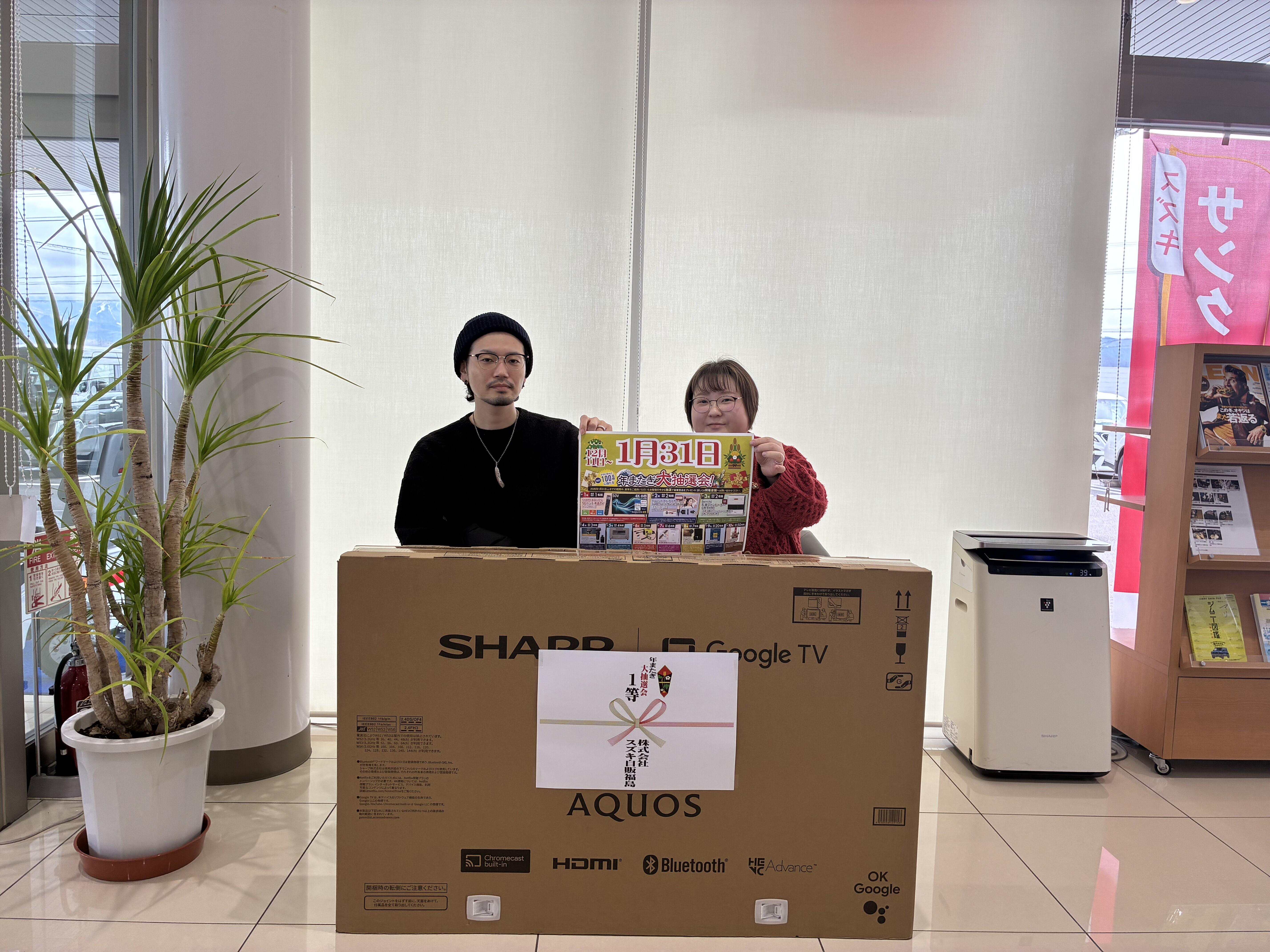 その他 2026.03.08 S様、抽選会当選おめでとうございます!!! いつもアリーナ会津店のHPをご覧いただき誠にありがとうございます 昨年12月から1月末まで行っておりました、 新車ご購入の方対象の年またぎ抽選会ですが、 なんと当店でご購入いただきましたS様が1等に当選されました 誠におめでとうございます S様同様、我々会津店スタッフ一同もとても驚いています 運が回って来ていると思いますので、 今年一年がS様にとってとてもよいお年になると思います ご納車も楽しみにしていただければと思いますので、 今後ともよろしくお願いいたします