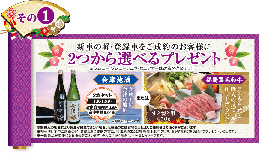 ①対象の新車ご成約でオプション用品プレゼント