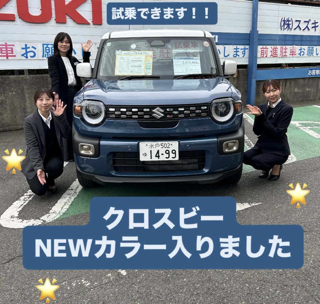 イベント/キャンペーン 2026.01.19 クロスビー新色入りました! キャンペーン期間:2026.01.24~2026.01.25 こんにちは いつもアリーナ日立南のHPを ご覧いただきありがとうございます。 ーお知らせー 商談会開催 1月24日(土)25日(日) 日立南にクロスビーの新色入りました!! ご試乗できます! お気軽にお問い合わせください アリーナ日立南へ ぜひご来店ください