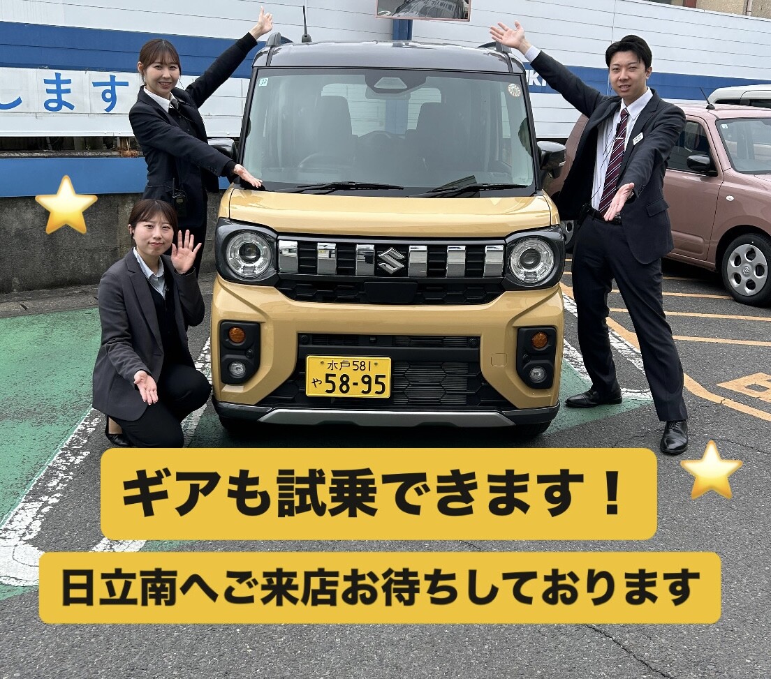 イベント/キャンペーン 2026.04.06 試乗車多数!ご来店お待ちしております! キャンペーン期間:2026.04.11~2026.04.12 こんにちは いつもアリーナ日立南のHPを ご覧いただきありがとうございます。 ーお知らせー 商談会開催 4月11日(土)・12日(日) 今月も商談会開催します! クロスビー・ハスラー 試乗車ご用意あります ー定休日のお知らせー 誠に恐れ入りますが、 7日(火)・8日(水) 定休日とさせていただきます。 9日(木)より 通常通り朝10時から営業いたします。 アリーナ日立南へ ぜひご相談ください