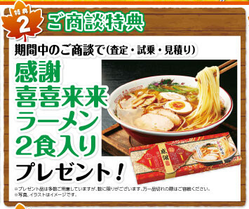 お車のご成約の特典も盛りだくさんです