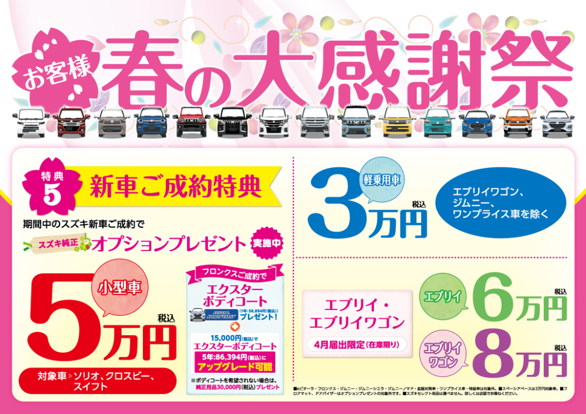 新車ご成約特典