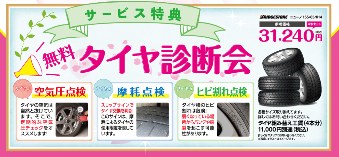 無料!タイヤ診断会&バッテリー診断会