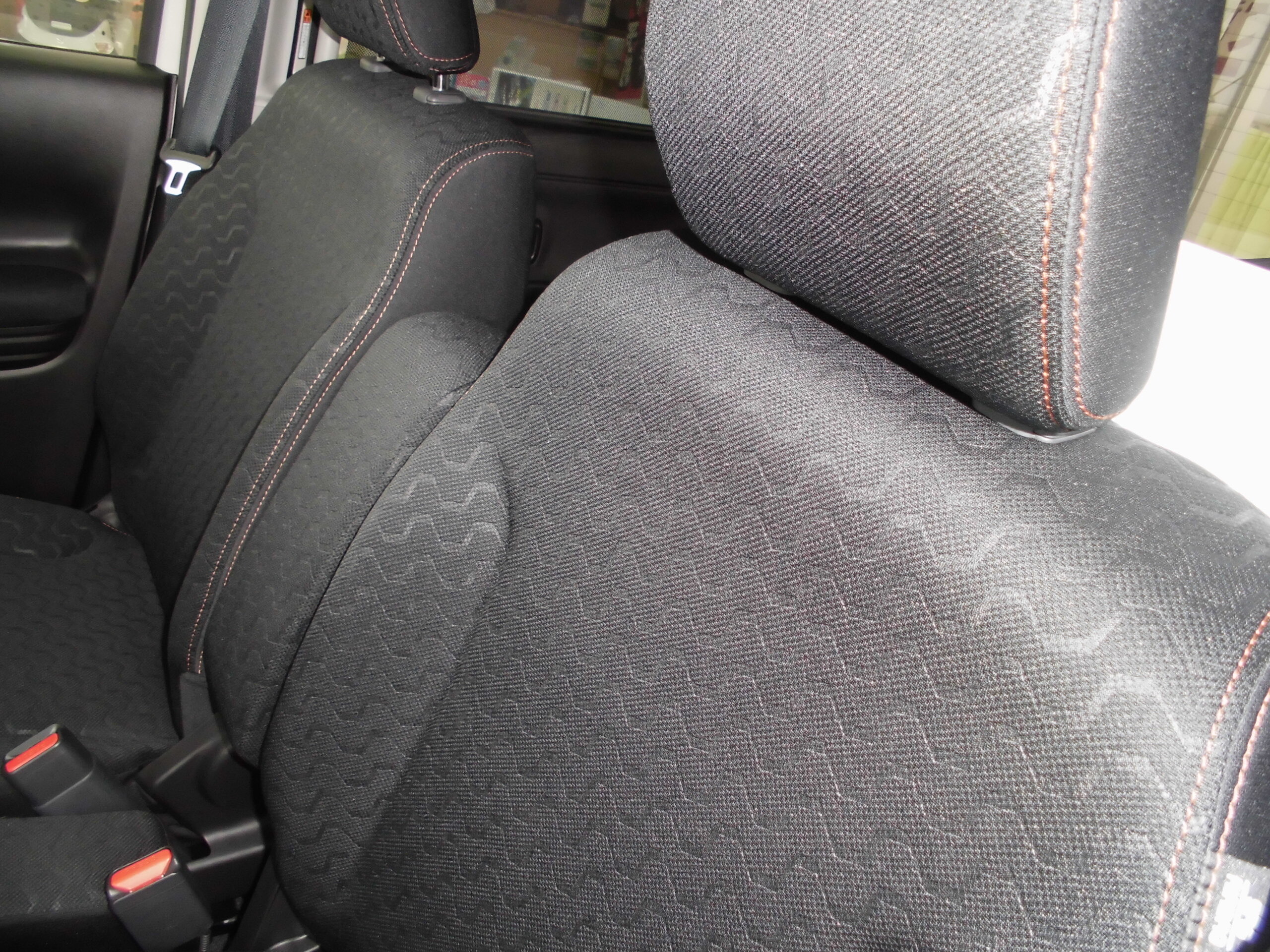 シートの表皮も撥水加工ありで、運転席・助手席ともにポケットもあるので小物も収納!